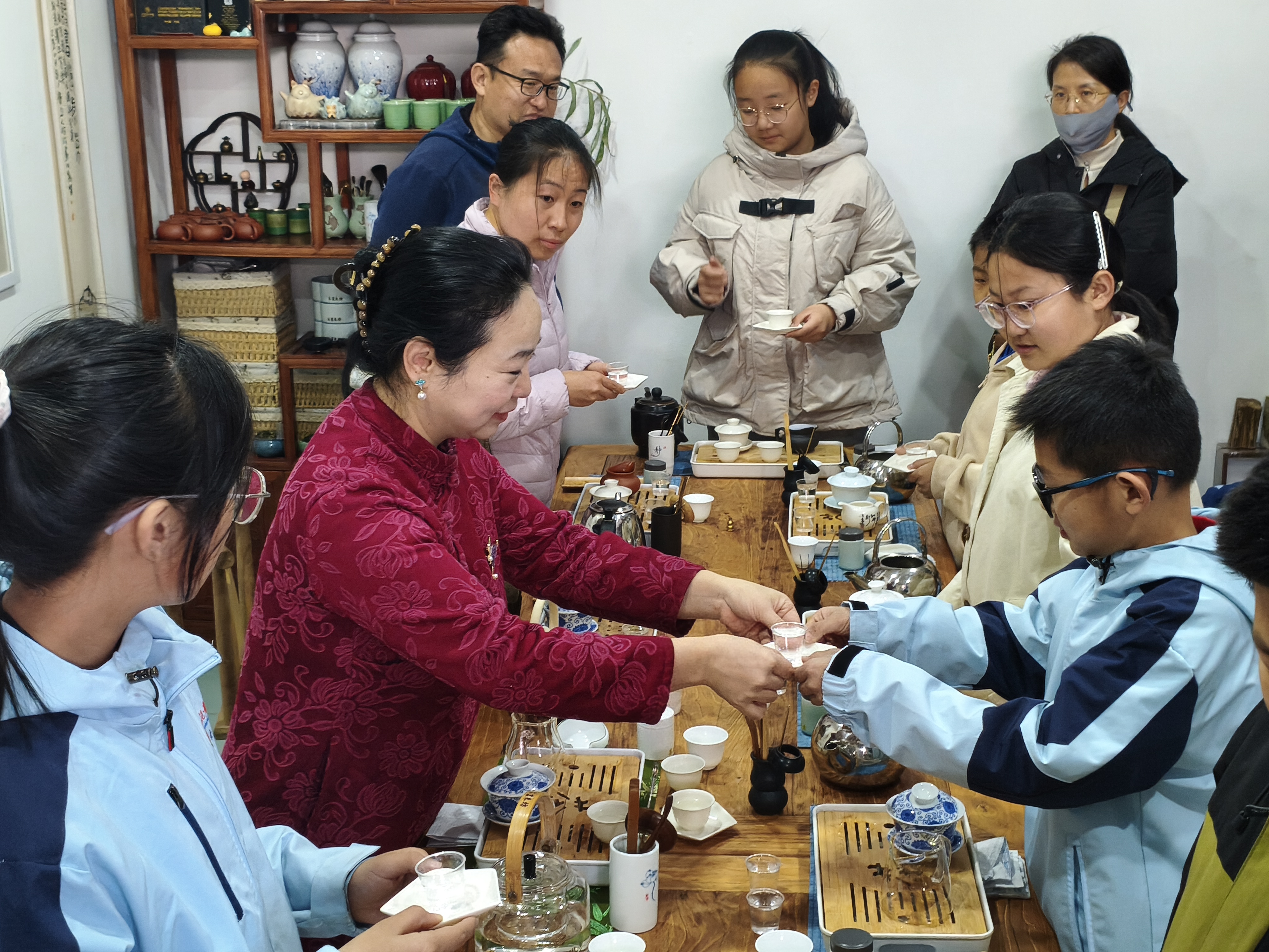 了解了茶礼,就要学习茶艺。在郭春香老师指导下,小记者们拿起摆好的茶具,从温杯、置茶、注水、倒茶到闻香、品茶,每一个步骤都充满了仪式感。通过用不同的茶具冲泡龙井、乌龙等茶,在扑鼻的茶香中享受自己动手冲泡的茶香气与口感,脸上洋溢着满足与幸福,在体验过程中感受茶文化的深厚底蕴。