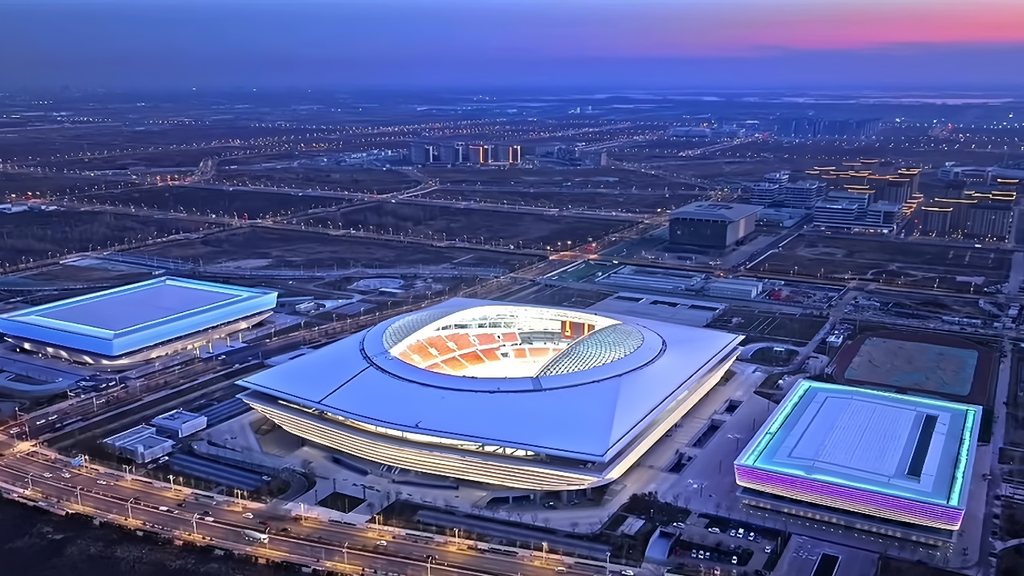 雄安体育中心由体育场、体育馆、游泳馆三座建筑以及室外运动场地、户外健身步道等配套设施组成,是雄安新区地标性建筑之一。其中,体育场设置3万个座席,体育馆设置1万个座席,游泳馆设置2051个座席,可满足各类型赛事活动的使用需求。雄安体育中心既是雄安新区重要的体育活动配套设施,可承接高规格国际赛事、演艺演出、会议会展等活动,也是一座面向全城人民的综合性体育公园,可满足市民体育锻炼、休闲娱乐、购物消费等多样化需求。