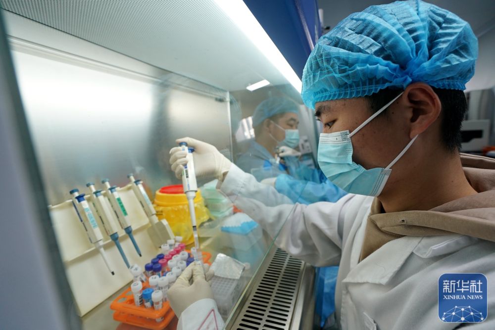 ↑3月19日,在雄安新区中关村科技园,雄安妙心生物科技有限公司工作人员在实验室内工作。