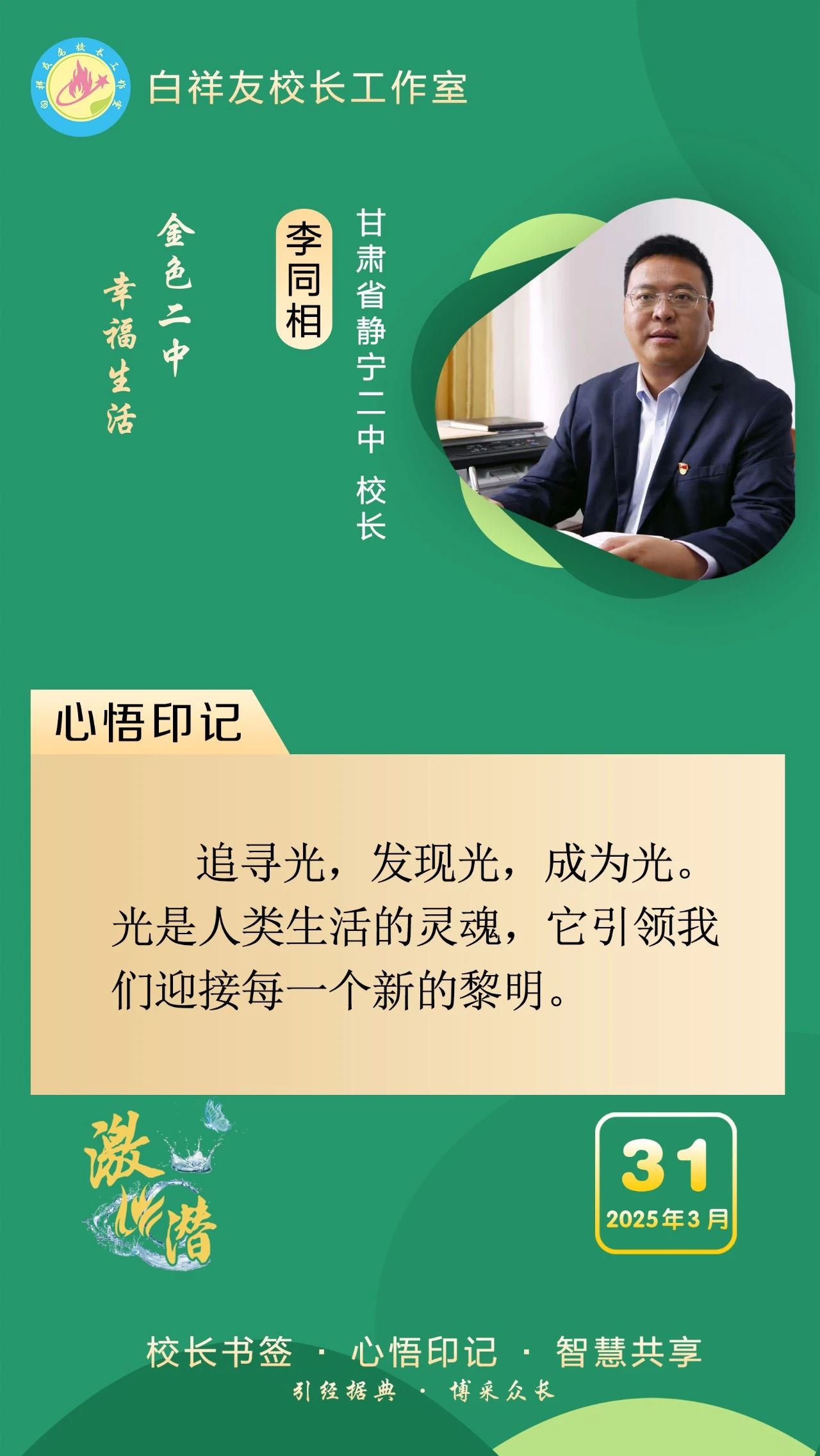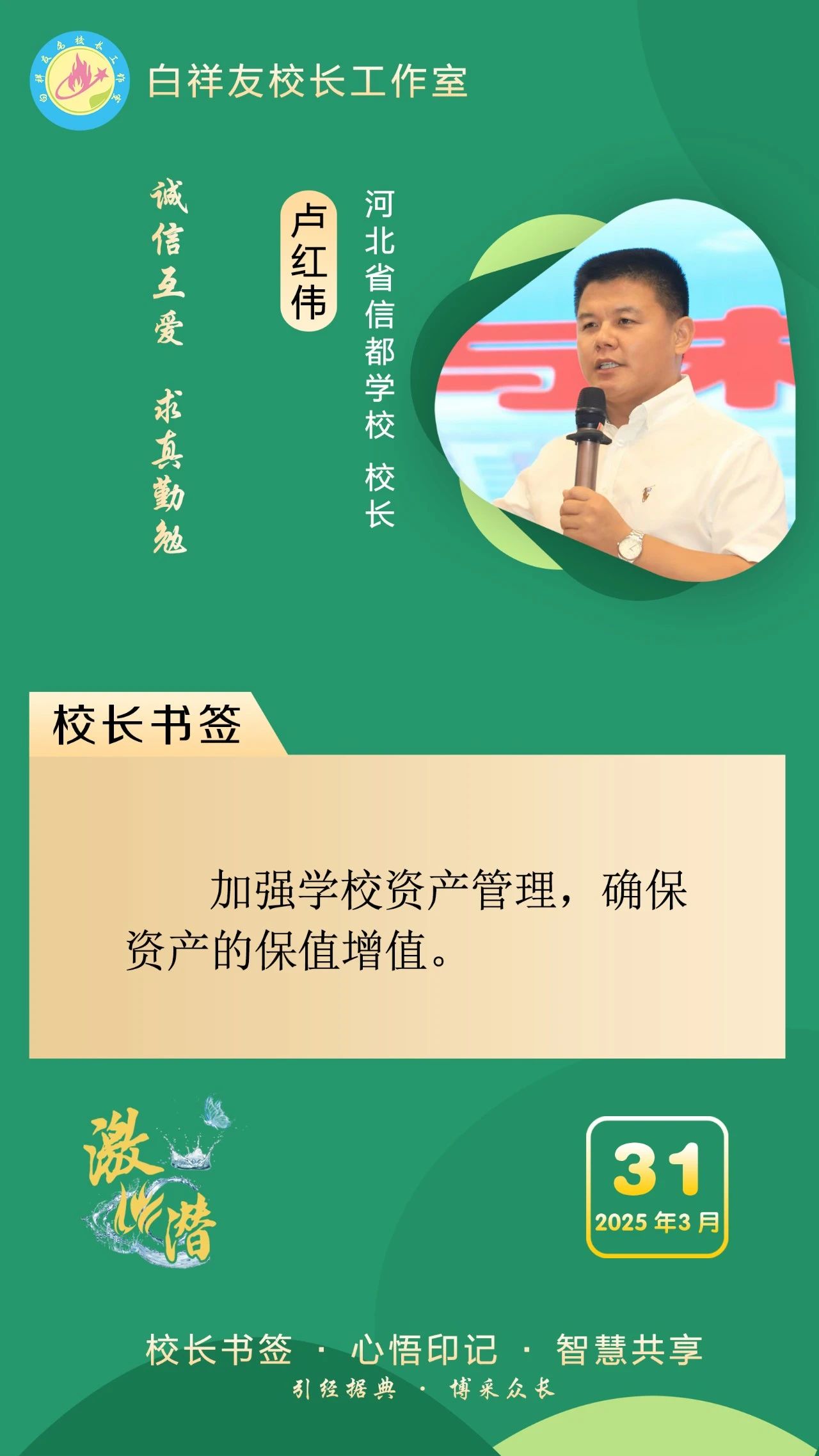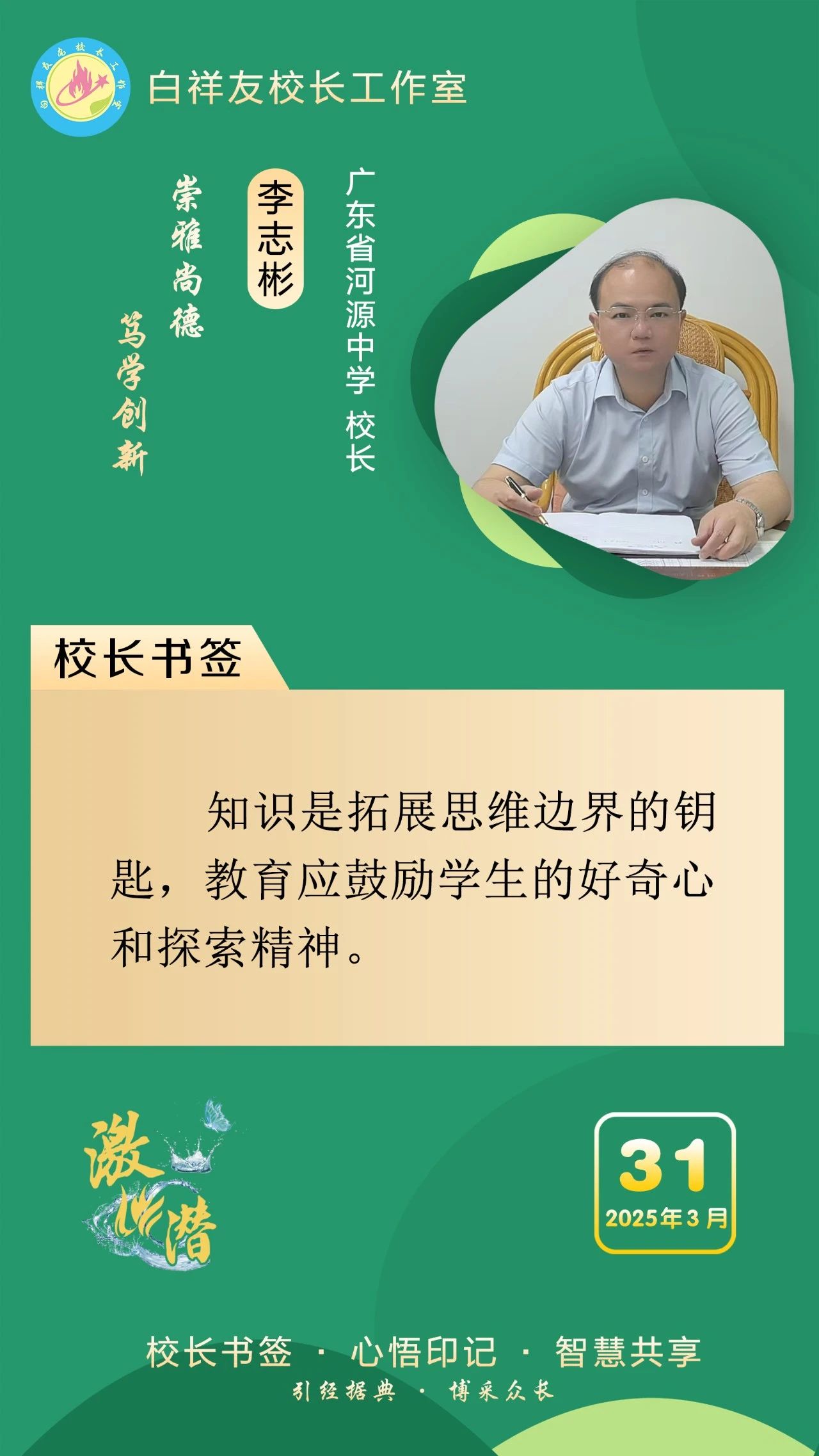 “白祥友校长工作室”成立于2019年4月,是教育部“国培计划”中小学名校长领航工程、河北省首批名校长工作室,目前省内外成员校56个。工作室坚持“资源共享、智慧共融、互助共赢”理念,已成为思想碰撞的交流场,资源共享的品牌站,成果展示的辐射源。
