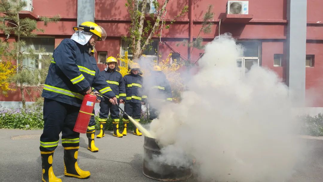 在灭火器实操环节,参训人员轮流上场,按照“提、拔、握、压”的步骤,对准模拟火源进行喷射,迅速扑灭初期火灾。通过反复练习,队员们进一步熟悉了灭火器的使用技巧,提升了应对突发火情的信心。