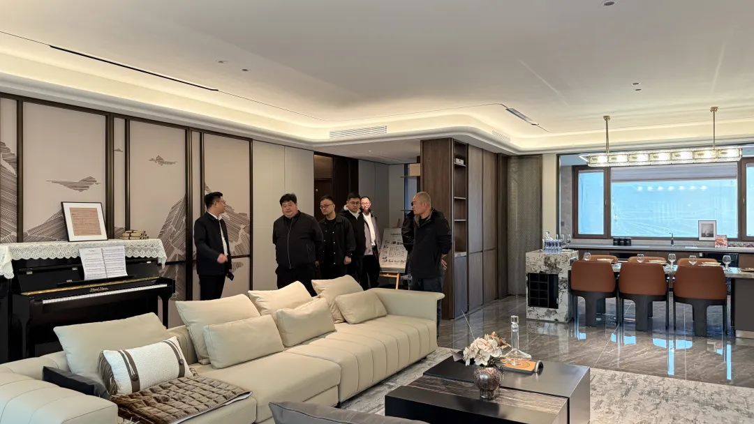 在蘭园工艺样板房,考察组详细观摩了其严苛的建造体系。从分户墙的隔音砂浆墙体到室内三玻两腔铝包木窗等超国标工艺,蘭园始终呼应“繁华深处享静谧”的居住哲学。