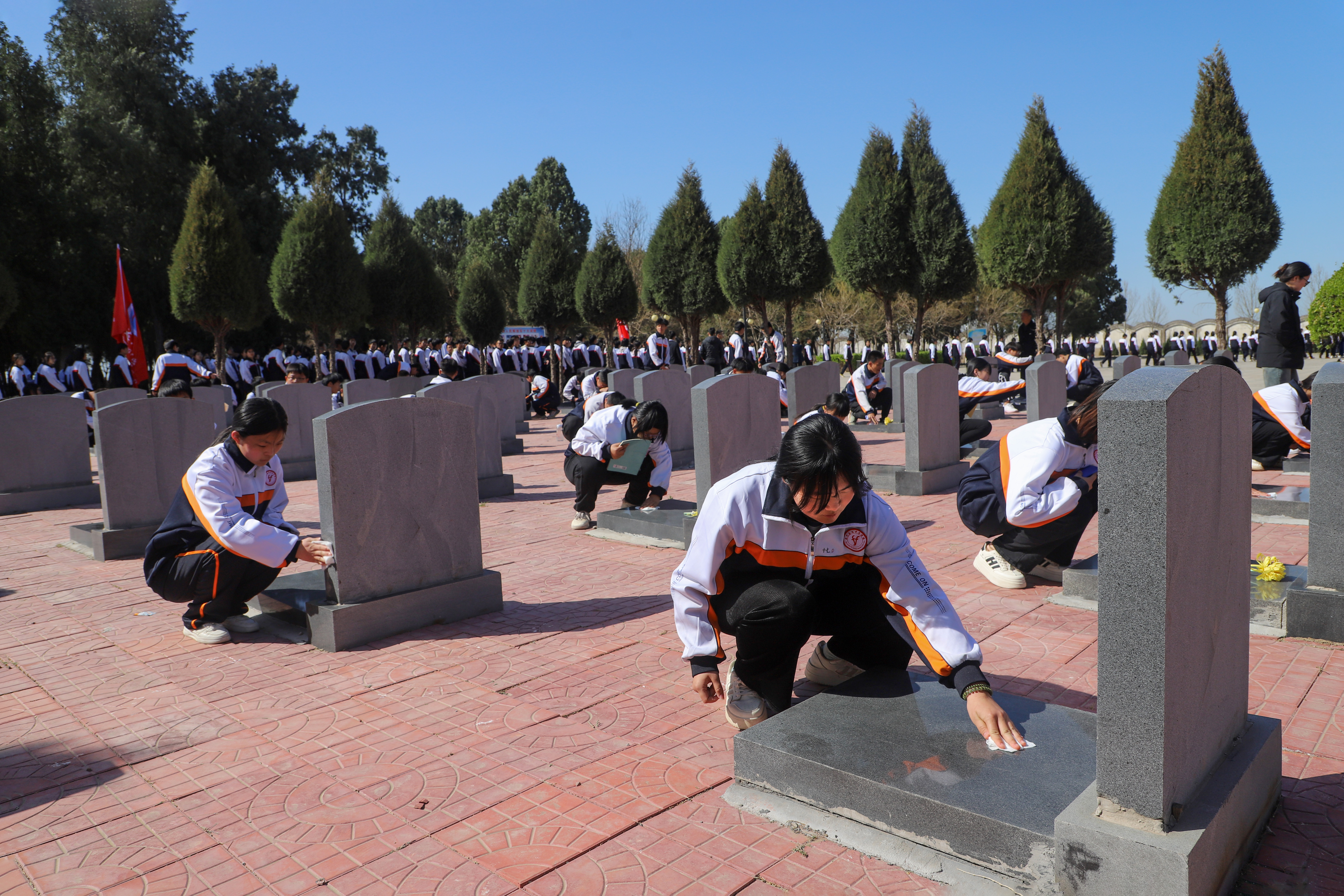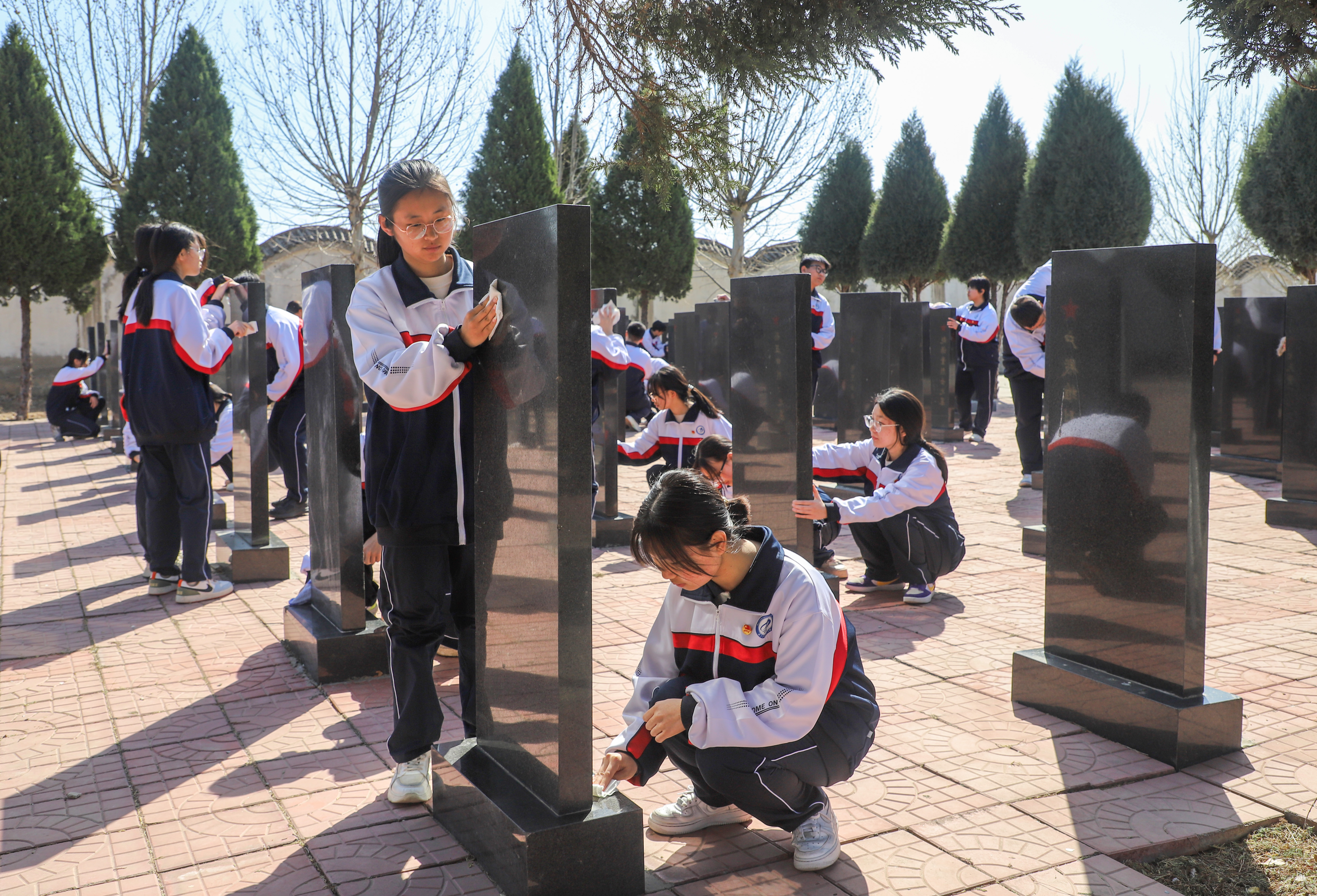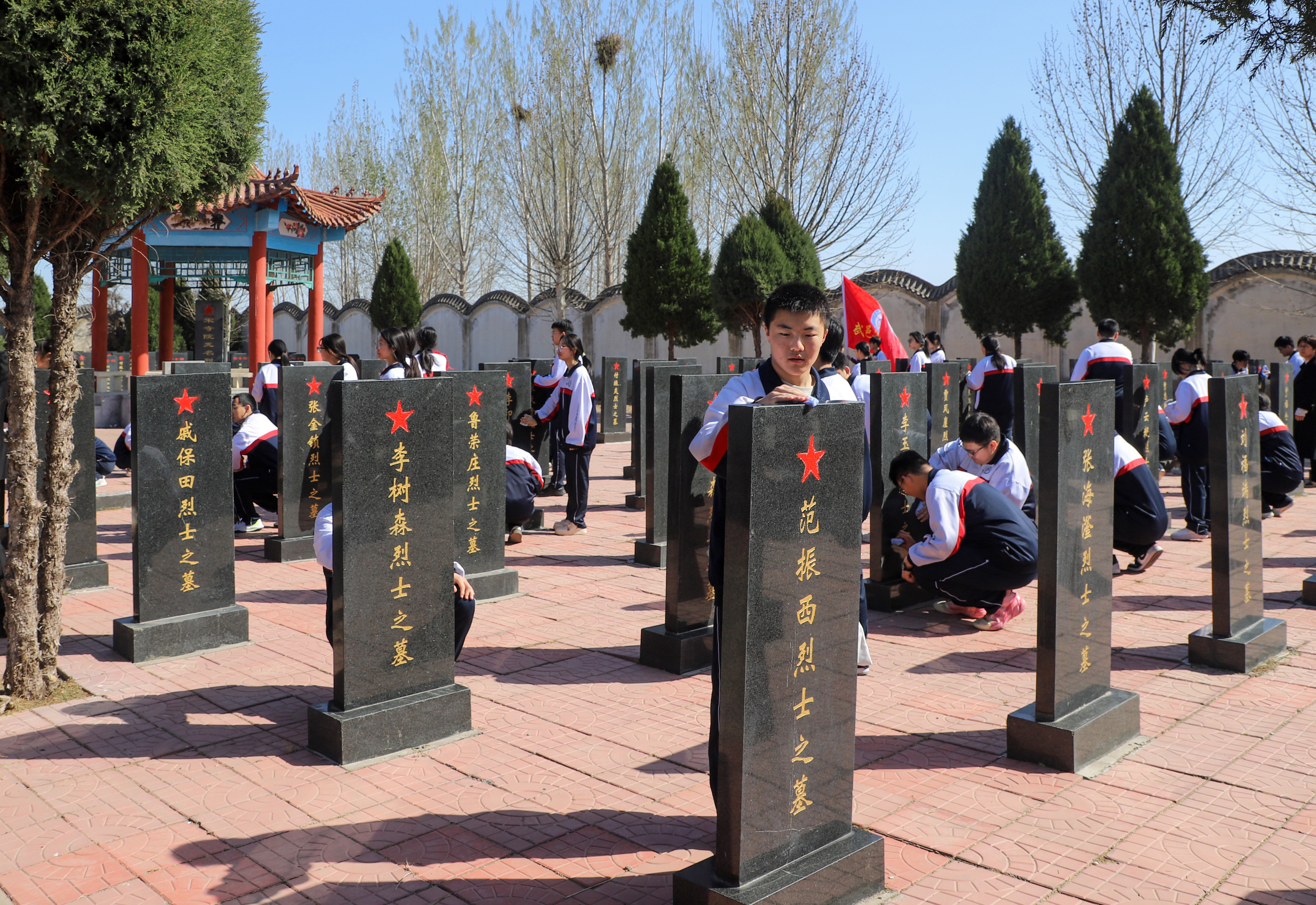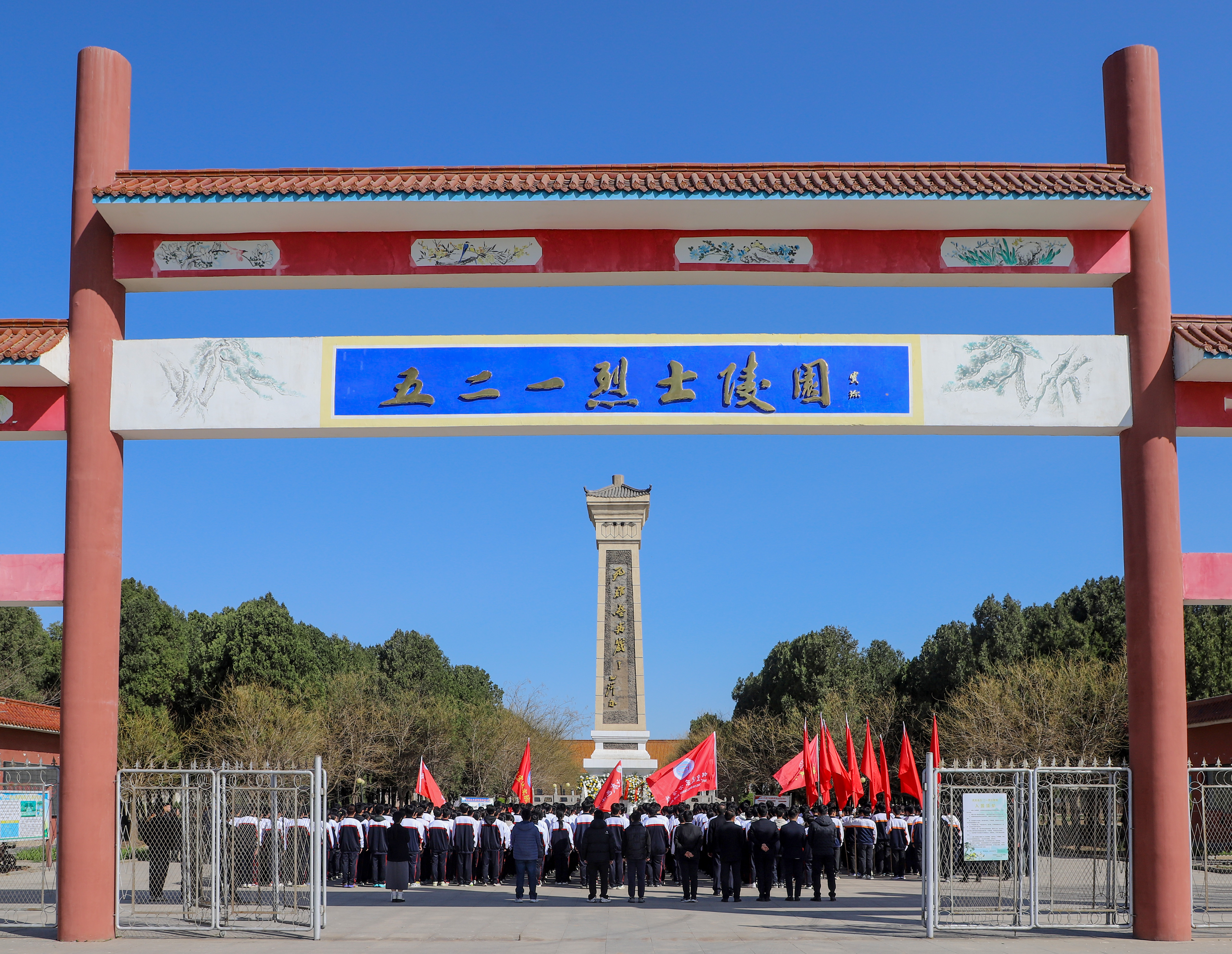 活动仪式上,奏唱《中华人民共和国国歌》,向烈士纪念碑敬献花篮,全体人员肃立默哀,表达深切哀思。学生们重温入团誓词,学生代表和教师代表分别献词,大家表示,一定要以先辈为榜样,努力成长为担当民族复兴大任的时代新人!仪式结束后,全体人员观看了“五二一”烈士名录,瞻仰了埋葬着300多名烈士的烈士岗,学生们擦拭了烈士墓碑。