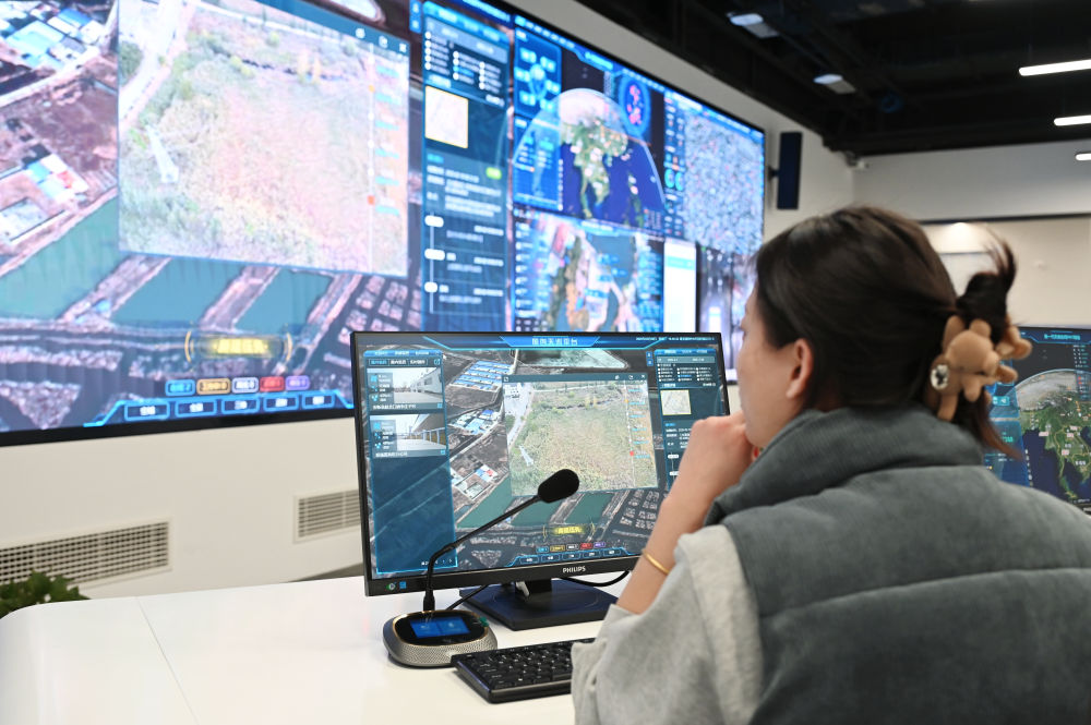 工作人员在卫星导航系统与装备技术公共实验平台进行操作。新华社发