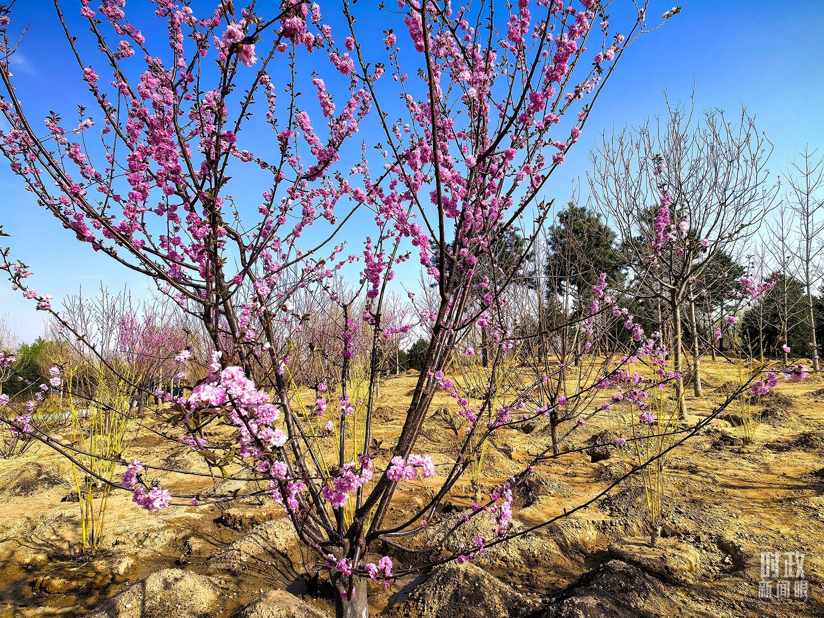 △永定河畔植树点,春意上枝头。(总台央视记者胡玮、程铖拍摄)
