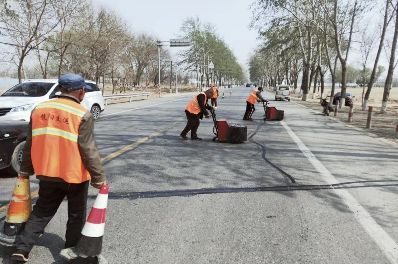 开展沿线设施大排查大整治活动。检查和修复损坏的标志标牌,确保其清晰醒目、完整规范,为过往车辆提供准确的引导信息;对防护栏、示警桩等交安设施进行清洗和维修,保证其防护功能正常,有效预防交通事故发生。目前,共维修更换示警桩38根,百米桩23根,公里碑3块,维修标志牌1块。同时,切实做好干线公路路面预防性养护工作,防止病害进一步扩大和蔓延,组织专业养护人员开展路面灌缝养护工作,完成灌缝2543延米。