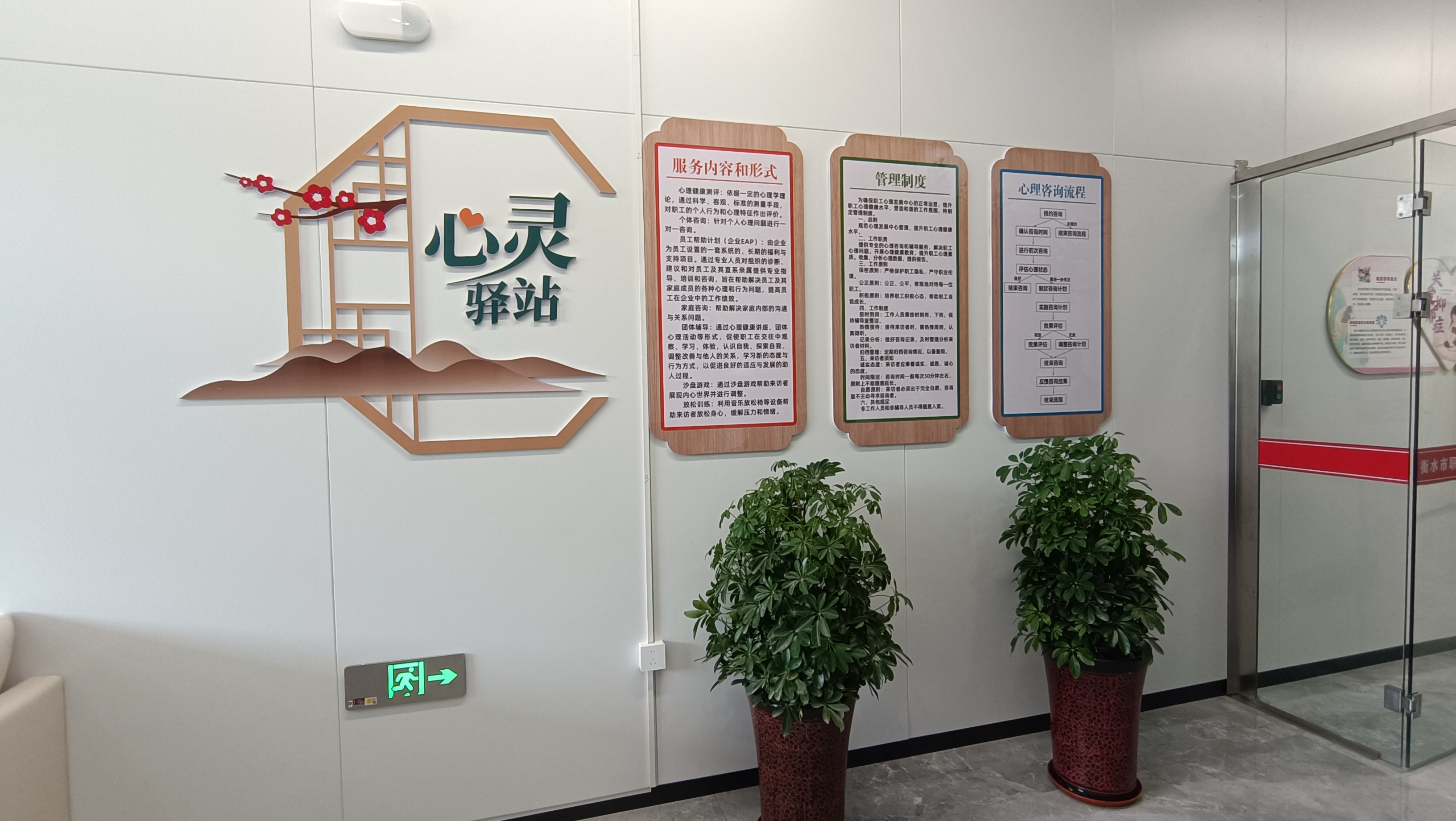 衡水市职工心理健康服务站设置了咨询接待区、沙盘治疗室等,配备了专业的心理咨询师团队,拥有完善的咨询设备和舒适的咨询环境,为广大职工群众提供全方位、一站式心理健康服务。心理健康服务站面向全市职工群众提供心理健康服务,包括心理健康测评、团队心理辅导、家庭教育指导、心理健康讲座、压力管理和情绪调节、职业发展支持、危机干预、企业EAP、企业团建等服务。