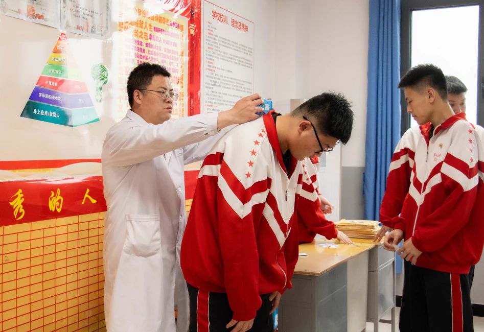 为进一步加强学生健康管理,降低学生脊柱侧弯发生率,衡水十三中深入贯彻落实《衡水市2025年中小学生脊柱侧弯防控工程工作方案》,对学生进行脊柱侧弯筛查,普及脊柱健康知识,助力学生健康成长。