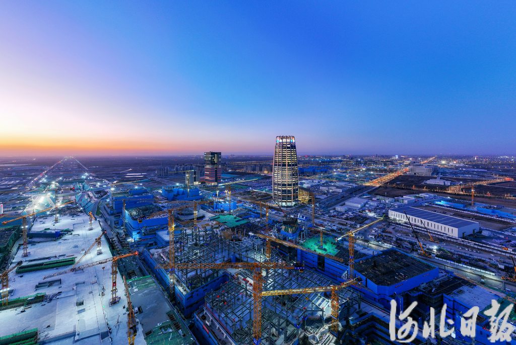 今年1月航拍的雄安国贸中心项目建设现场。雄安新区财政局通过“投建运一体化”模式,吸引经营主体购买雄安集团雄商置业公司30%股权,有效吸引社会资本支持雄安国贸中心项目建设。(河北日报资料片)雄安新区宣传网信局供图