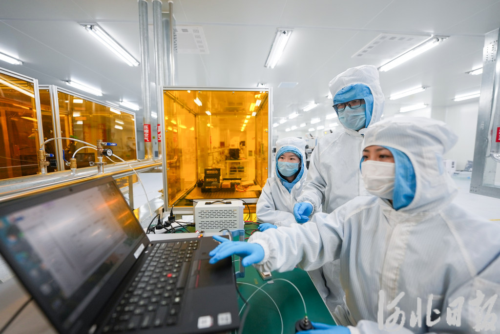 日前,雄安新区科创中心中试基地内,芯联新(河北雄安)科技有限公司工作人员正在进行激光器线宽测试。河北日报记者 李畅摄