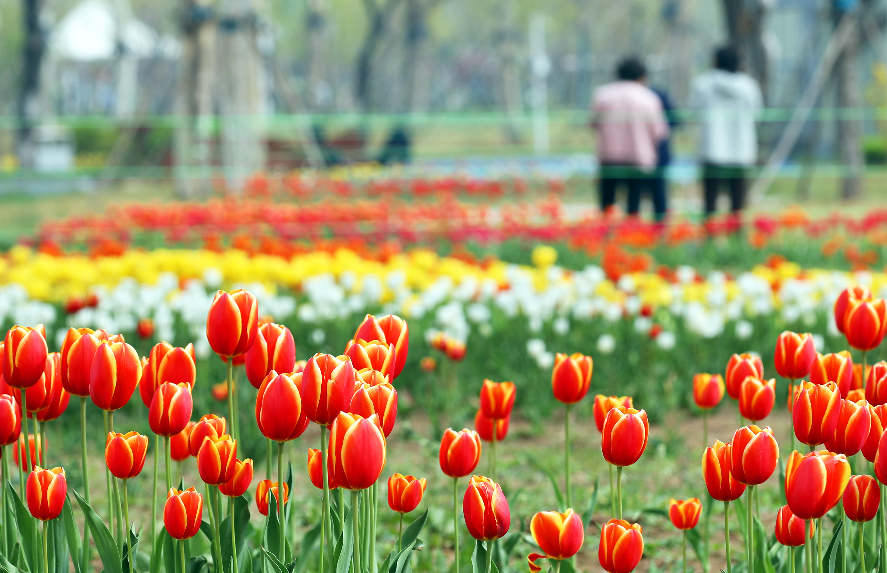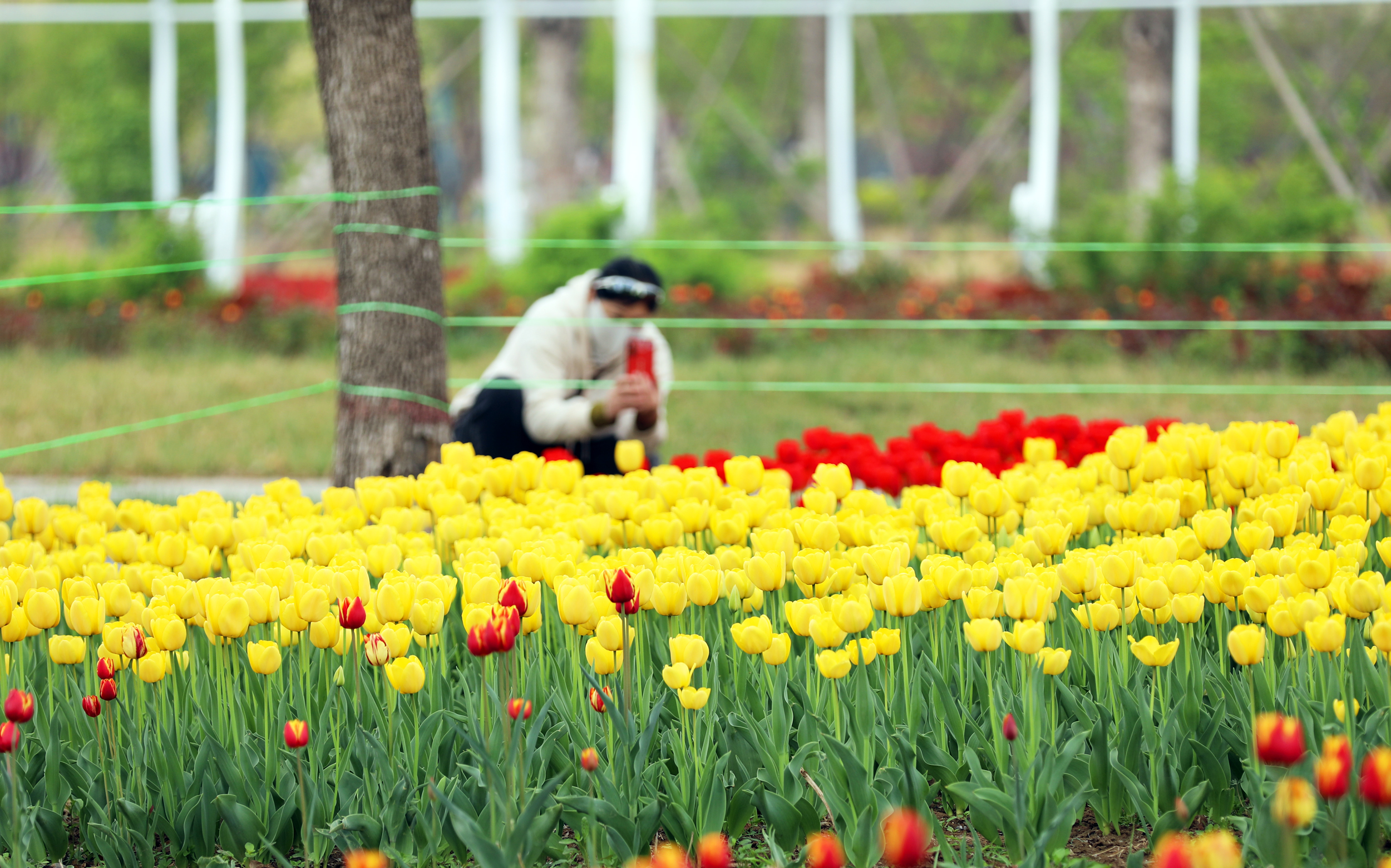 走进奥体公园,色彩斑斓的郁金香映入眼帘。红的似火,热情奔放;粉的如霞,娇嫩柔美;黄的胜金,璀璨夺目。不同颜色、品种的郁金香错落有致地分布在园内各处,宛如绚丽多彩的画卷在眼前徐徐展开,让人目不暇接。