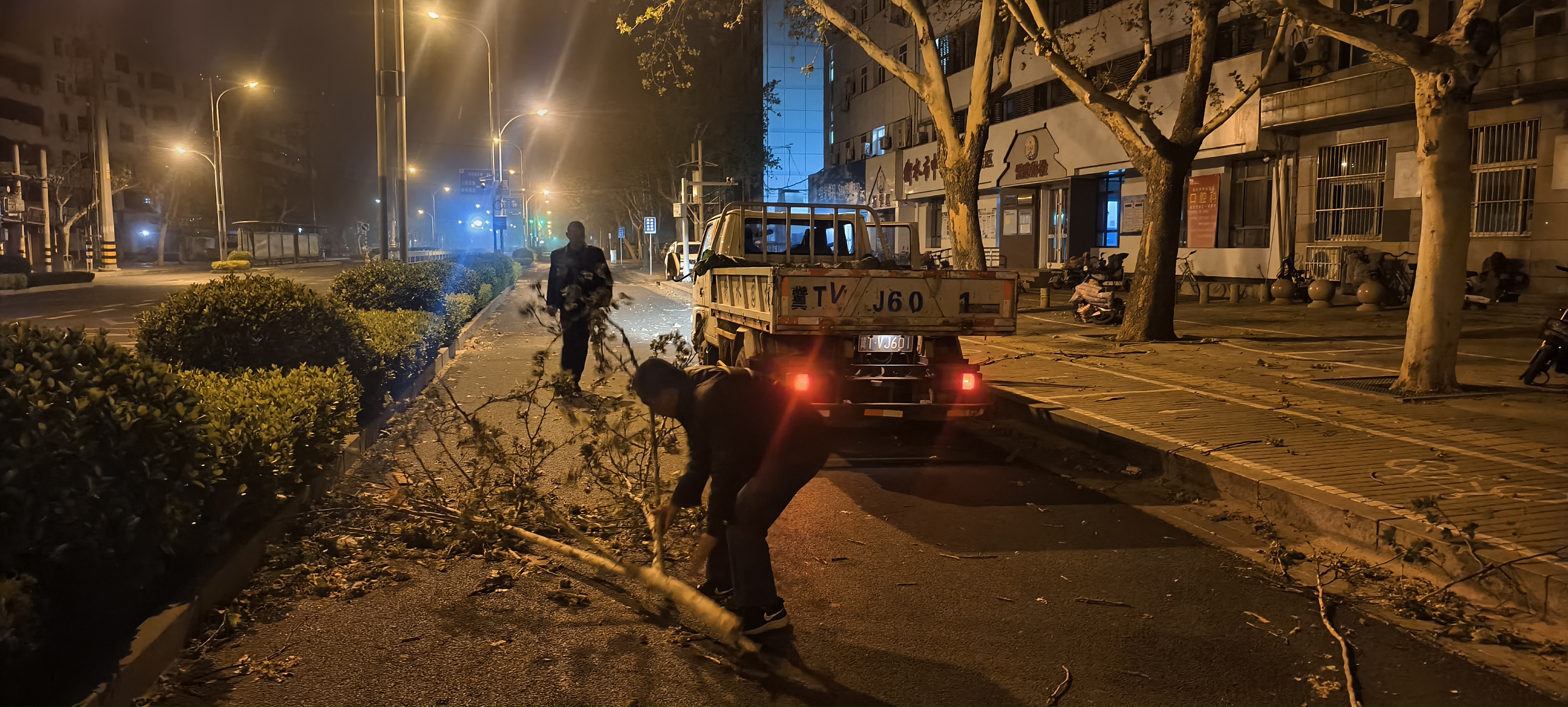 闻风而动,迎风而上!市园林中心作为城市绿化的守护者,他们按照应对极端天气预案立即出动应急队员对城区路段进行巡查,发现大树倾倒、树枝折断等情况后,立即利用油锯、手锯等工具进行分解切割,对倒伏树木进行扶正,对断裂的树枝锯断分解清运。经过5个多小时的努力,凌晨六点左右,完成了倒伏树木的清运工作,及时消除了安全隐患,恢复正常的道路通行秩序。据统计,市园林中心出动工作人员150余人次,动用车辆50余台次,清理被大风刮断的树枝90余处。