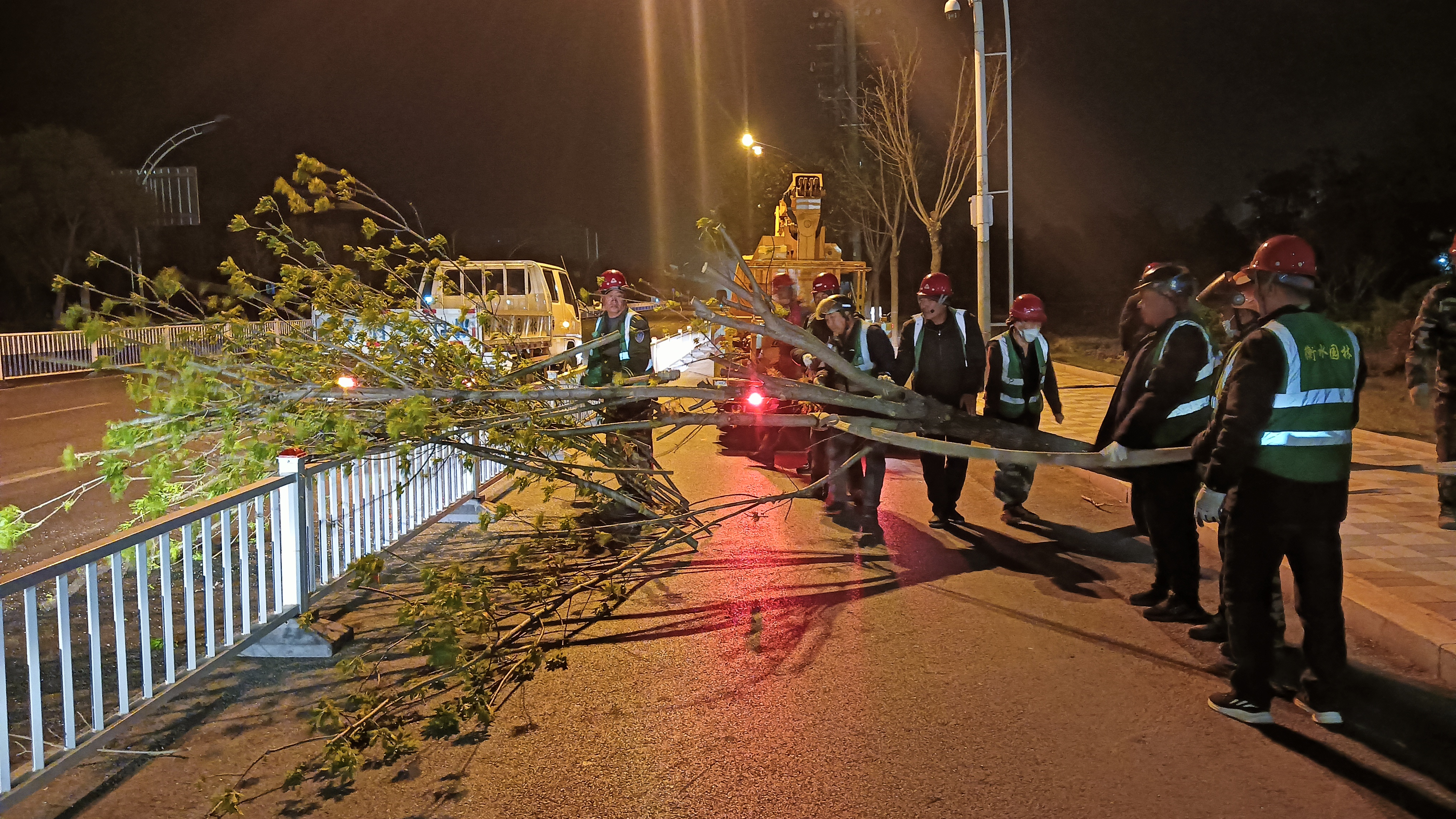 4月11日深夜,我市大风肆虐,主城区多处行道树木、树枝被大风刮倒占据行车道,造成道路不畅,也给过往行人、车辆带来了安全隐患。市园林中心迅速行动,立即启动恶劣天气应急预案,组织应急抢险队彻夜开展树木倒伏、断枝处理等各类险情排查处置工作,保障市民出行安全。