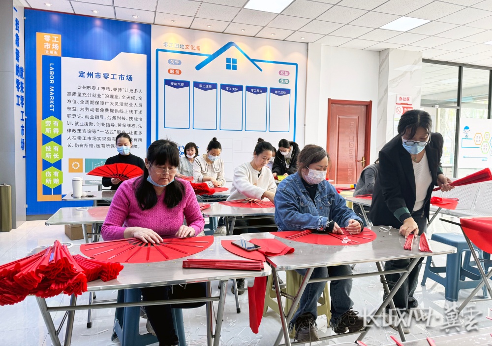 记者在现场看到,业务办理区、信息发布区、政策咨询区等功能分区明确,求职登记、岗位匹配、技能培训、权益咨询等服务一应俱全。“以前找活全靠碰运气,现在市场里信息透明,不仅靠谱,还能免费学到新技能。”一位刚完成扇面装裱培训的求职者说。