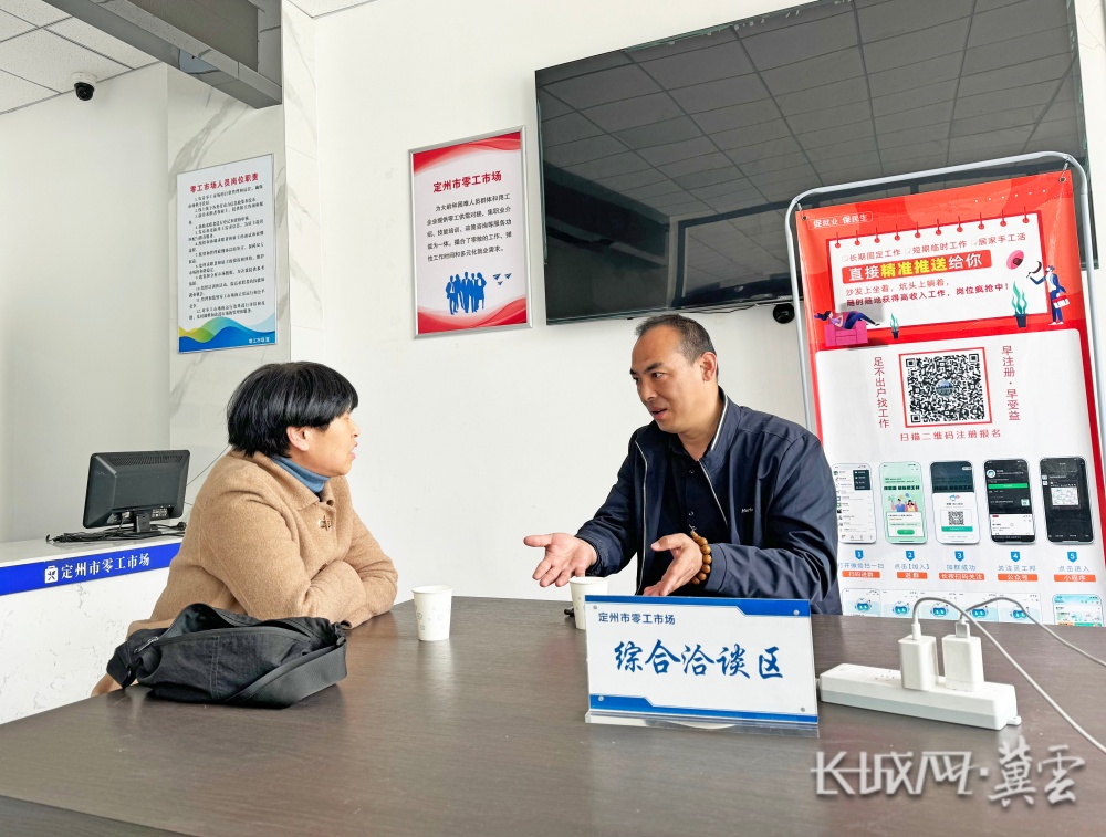 颜瑞明(右)向零工了解意向岗位。长城网·冀云客户端记者 赵绅光 摄