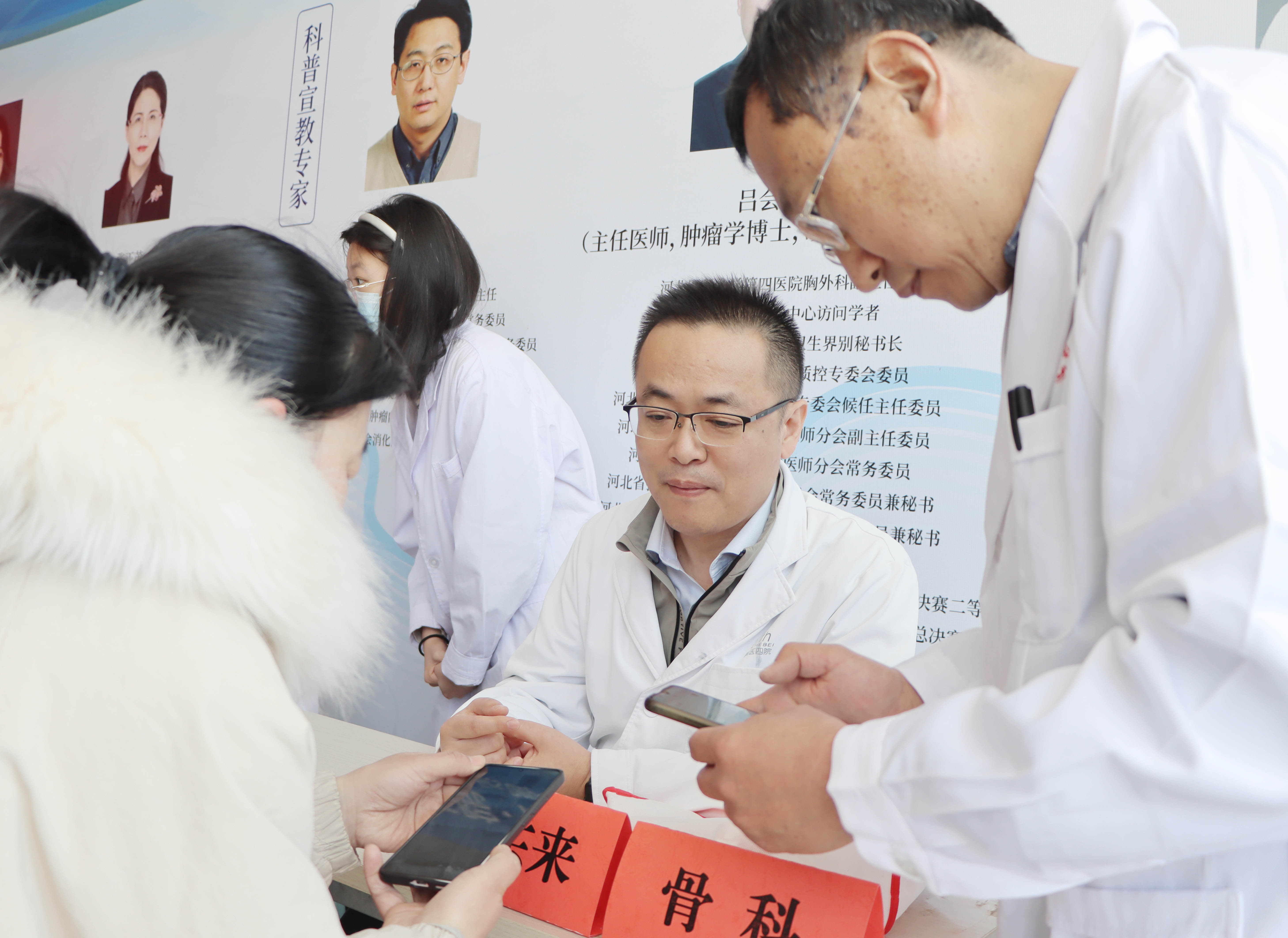 在衡水四院西院区一楼大厅,河北医科大学第四医院耳鼻咽喉头颈外科、骨科、妇科、肝胆外科、胃肠外科、肿瘤内科、肿瘤免疫科的知名专家开展义诊,针对问诊的广大市民答疑解惑并提出个性化治疗方案。活动累计服务400余人次,受到广大市民的一致好评和欢迎。