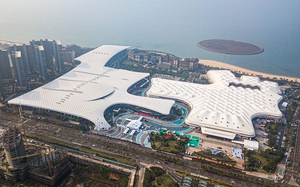 这是2025年4月10日拍摄的第五届消博会主会场海南国际会展中心(无人机照片)。新华社发