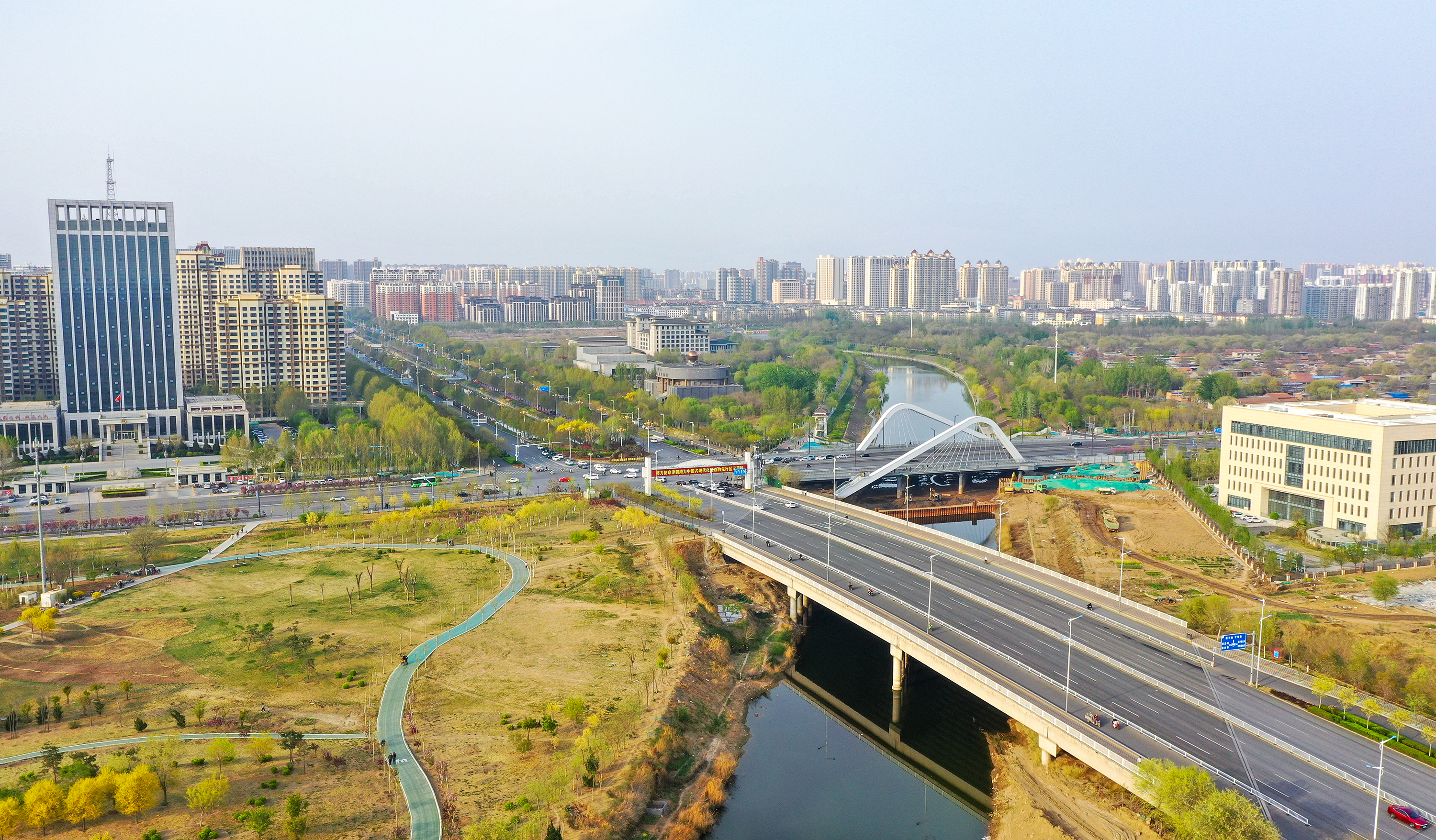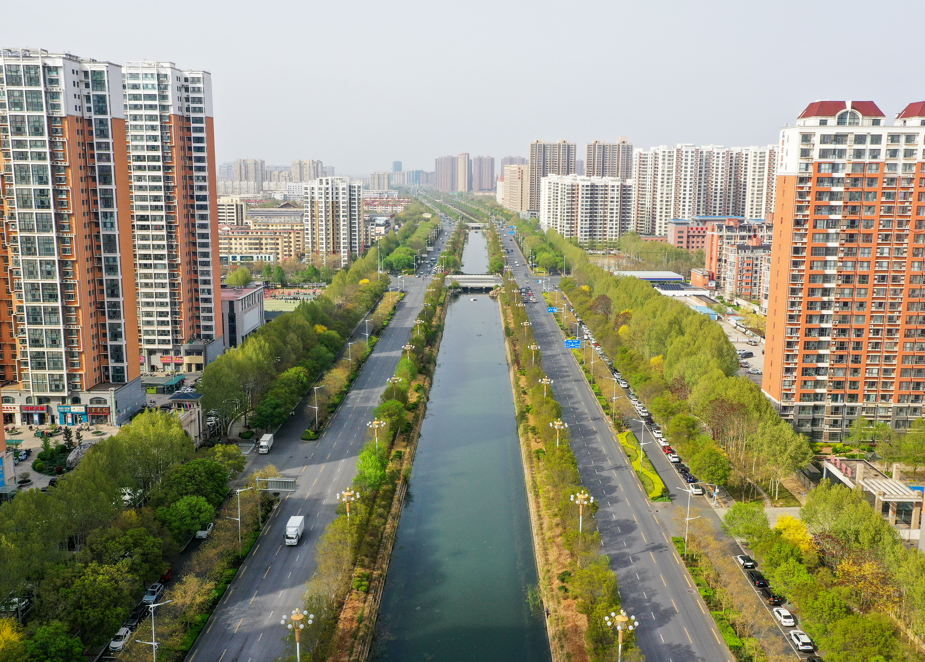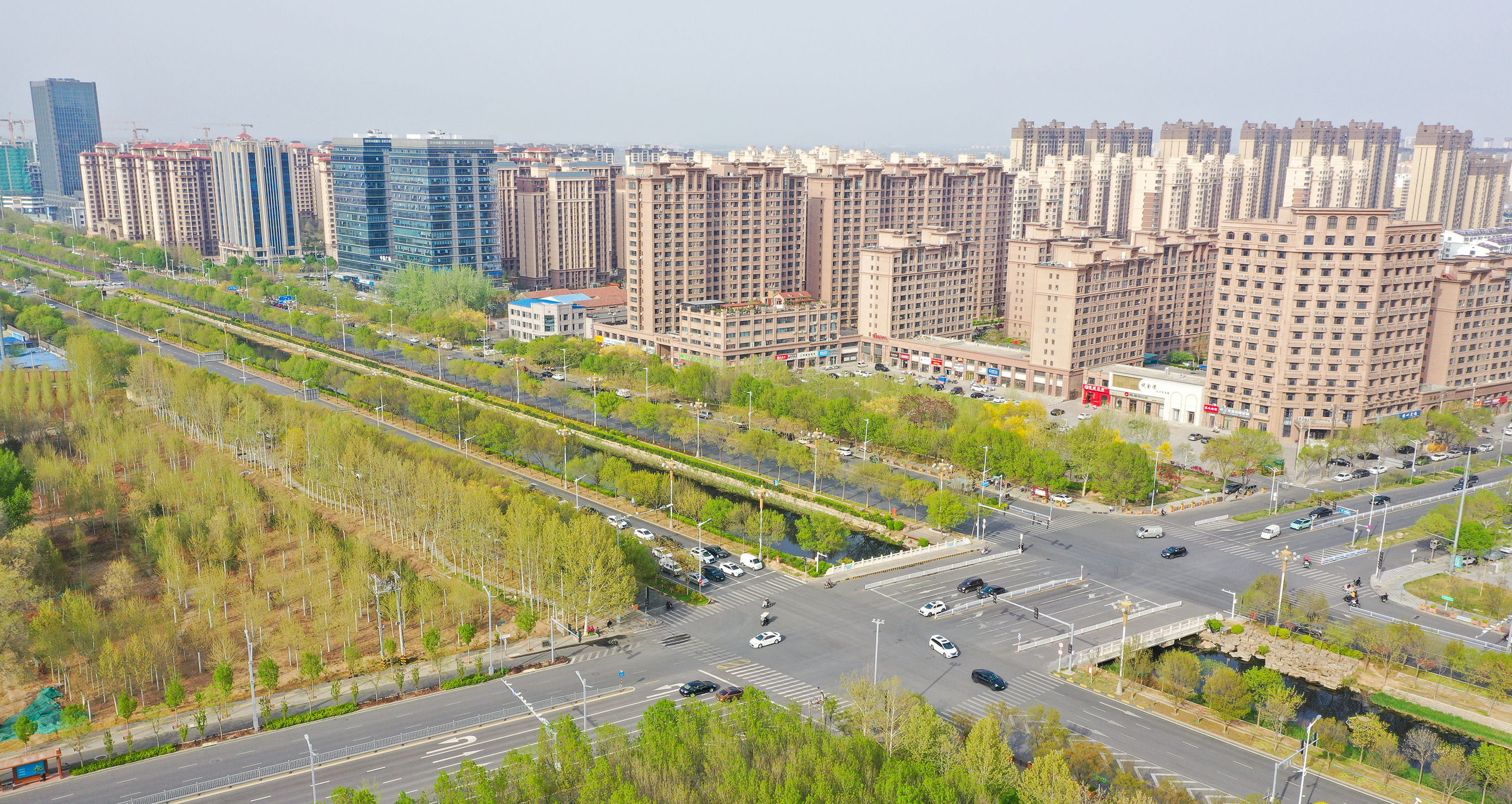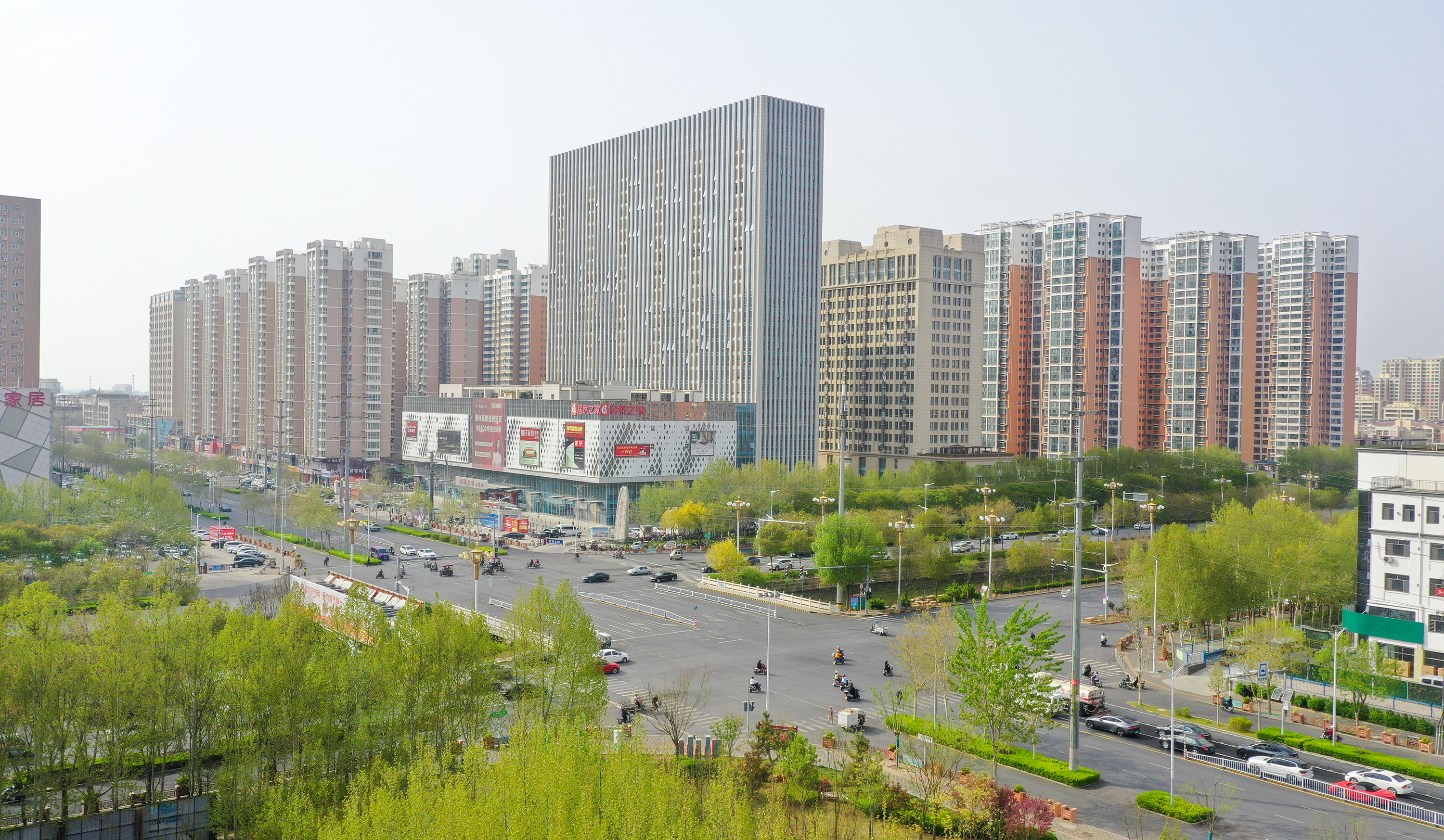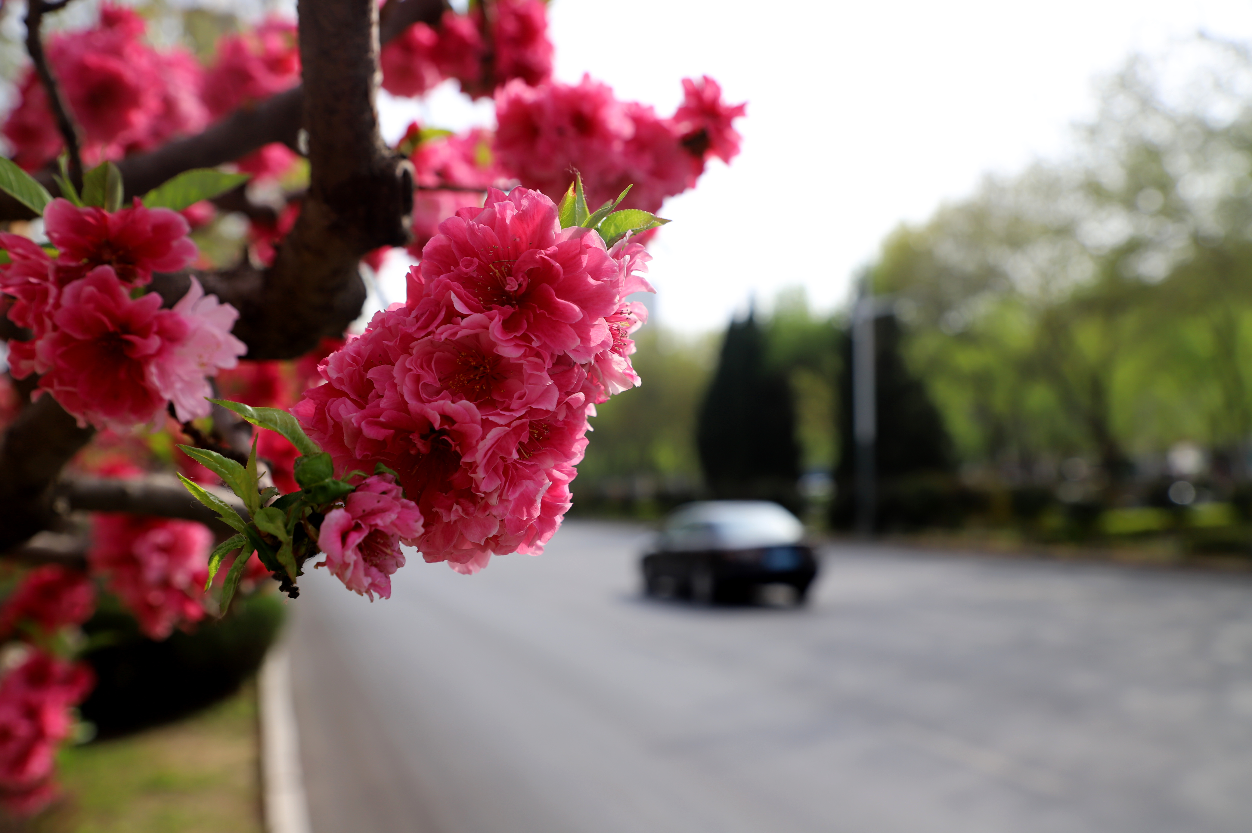 在市区的前进街,春日的美景宛如一幅绚丽画卷。街道两旁绿树枝叶在微风中轻轻摇曳,碧桃花恰到好处地点缀其中,为这抹绿色增添了几分俏皮与艳丽。前进街两旁的建筑在这花与树的烘托下,更显独特韵味,让人不禁沉醉在这充满生机与烟火气的春日街景之中。