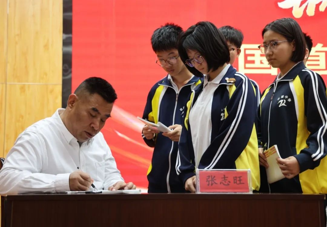 欢迎仪式后,衡水市第二中学党委书记陈红升致欢迎词。他首先代表学校对张志旺同志的到来表示热烈欢迎和衷心感谢,随后他向广大同学提出期望,希望大家能够以张志旺同志为榜样,做诚信的“践行者”和“传播者”,胸怀坦荡,传递正能量,让诚信之风从校园吹向更远。随后,衡水市第二中学校长伊长杰代表学校向张志旺颁发校外辅导员聘书,聘请其担任衡水二中校外辅导员,以此引领同学们更好地传承和弘扬诚信精神,为学校德育工作注入新的活力。