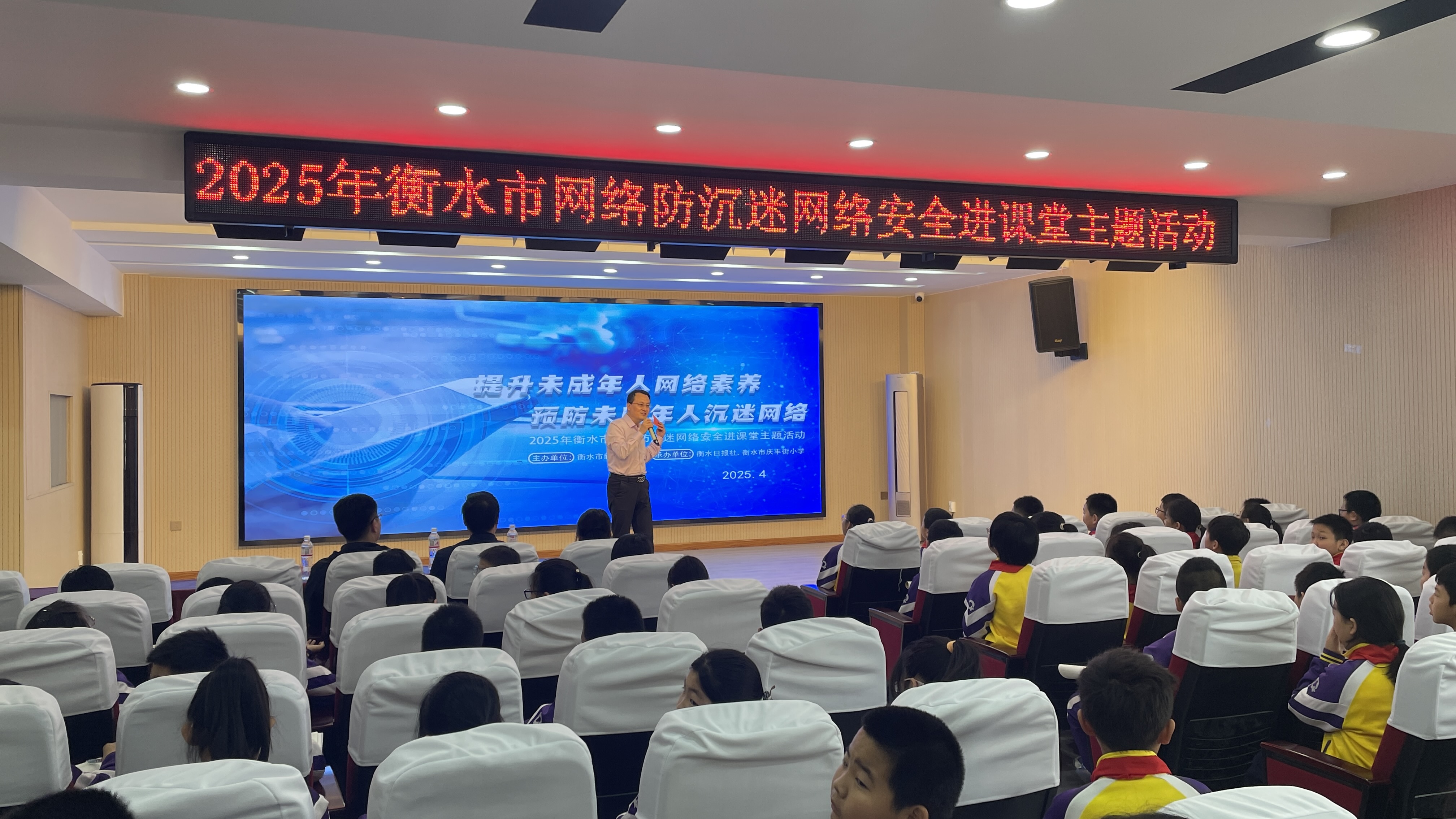 为增强学生对网络沉迷危害的认识,提高自我保护能力,日前,由中共衡水市委宣传部、衡水市新闻出版局主办的2025年衡水市网络防沉迷网络安全进课堂主题活动走进衡水市庆丰街小学。
