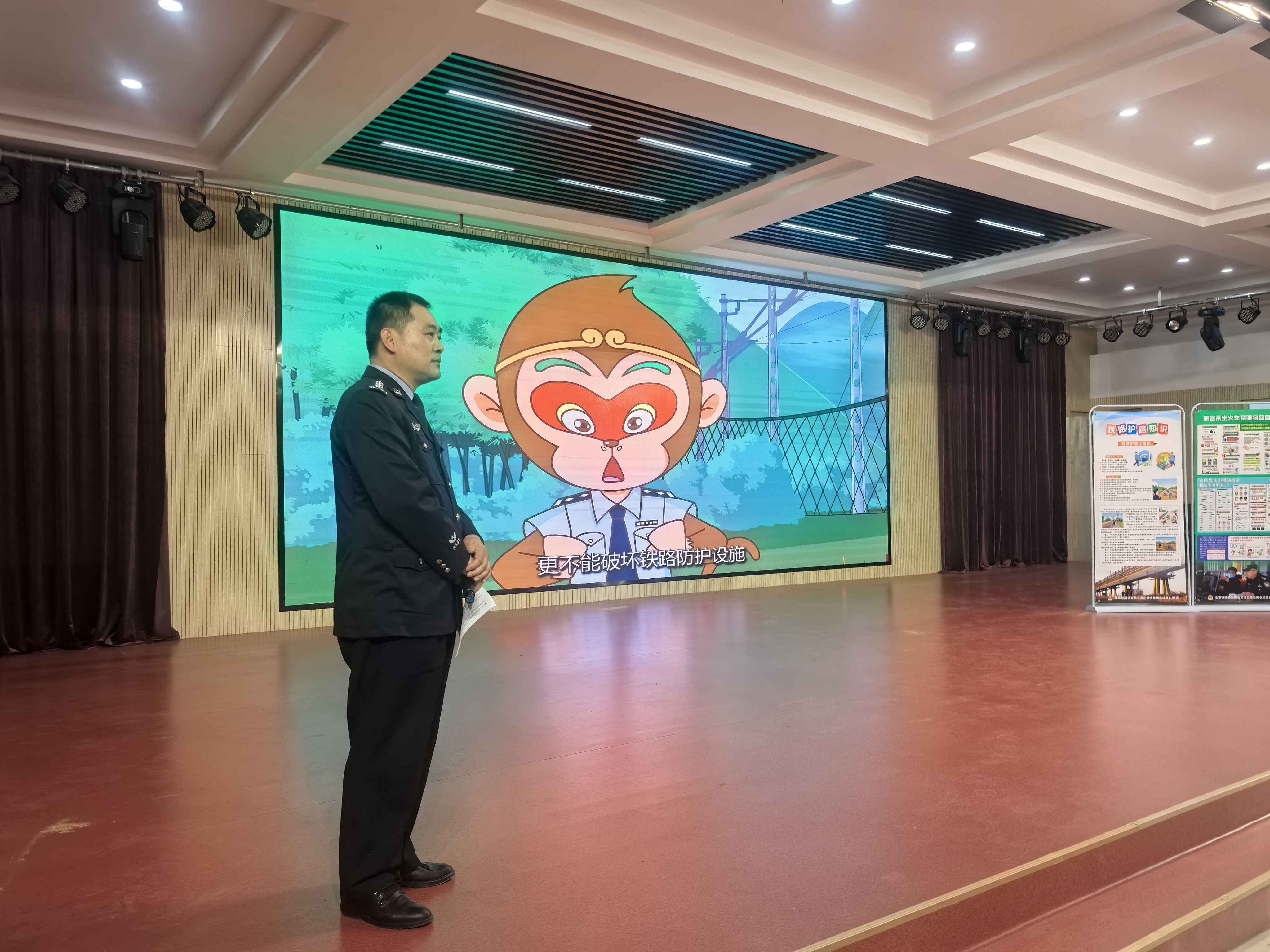 互动环节,民警以问答形式解析铁路出行常见问题,引导学生讨论如何维护国家安全。学生们踊跃发言,纷纷表示,要从自身做起,抵制危害国家安全的行为,争当安全小卫士。活动还通过播放铁路安全动画片、设置安全知识展板等寓教于乐的形式,帮助小学生筑牢安全意识。