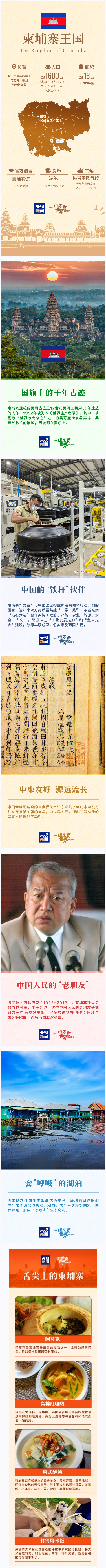 从国旗上的千年古迹吴哥窟,到湄公河畔会“呼吸”的洞里萨湖;从元代周达观笔下的《真腊风土记》,到与中国结下深厚情谊的西哈努克;从共建“一带一路”的金港高速公路,到“钻石六边”合作架构不断充实……通过一组图,带您了解中国的这个“铁杆”朋友——柬埔寨↓↓↓