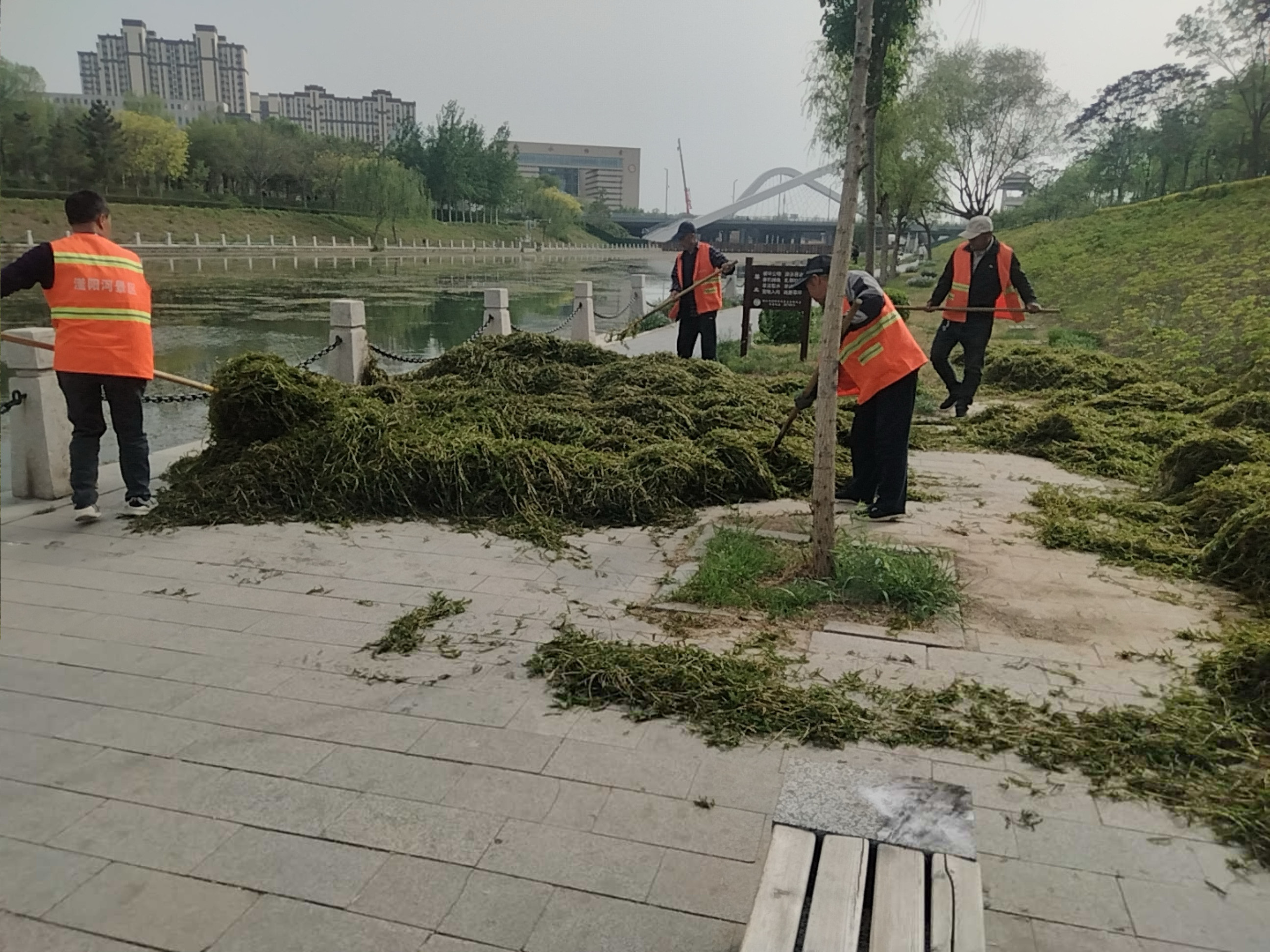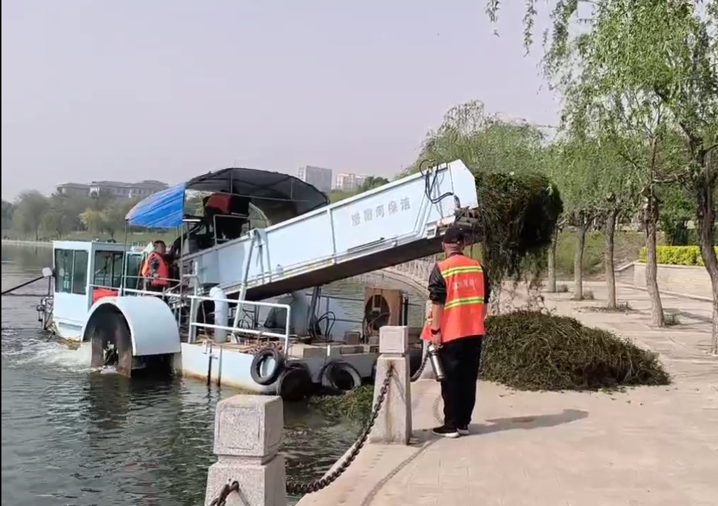 为保障滏阳河河道清洁,维护良好的水生态环境及河道景观环境,迎接即将到来的滏阳河龙舟赛,自4月17日起, 市城管局滏阳河管理中心针对市区上游段水草密集区域,启动春季河道水草专项清理工作,对过量生长及腐败断根的水草进行集中打捞。