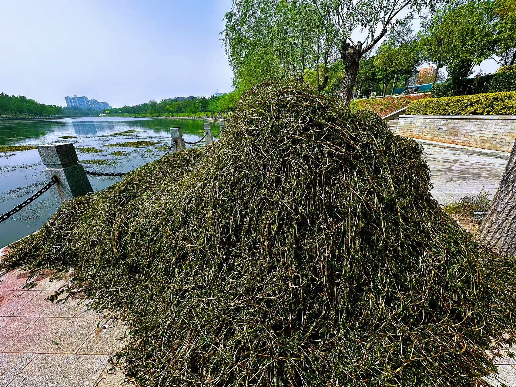 水草作为河道生态系统的关键“生产者”,在水环境、水景观中扮演着重要角色。然而,近期随着气温升高,滏阳河市区段菹草、金鱼藻、眼子菜等水生植物进入快速生长期,部分区域出现水草过度繁殖现象。“过量水草不仅破坏景观美感,还会加剧水体富养化。气温升高后易断根腐烂污染水质、滋生蚊蝇,危害市民健康。”滏阳河管理中心相关负责人介绍。为此,该中心自入春起持续监测水草生长态势,制定专项打捞方案,并对专业打捞设备进行检修调试,确保打捞作业效率。