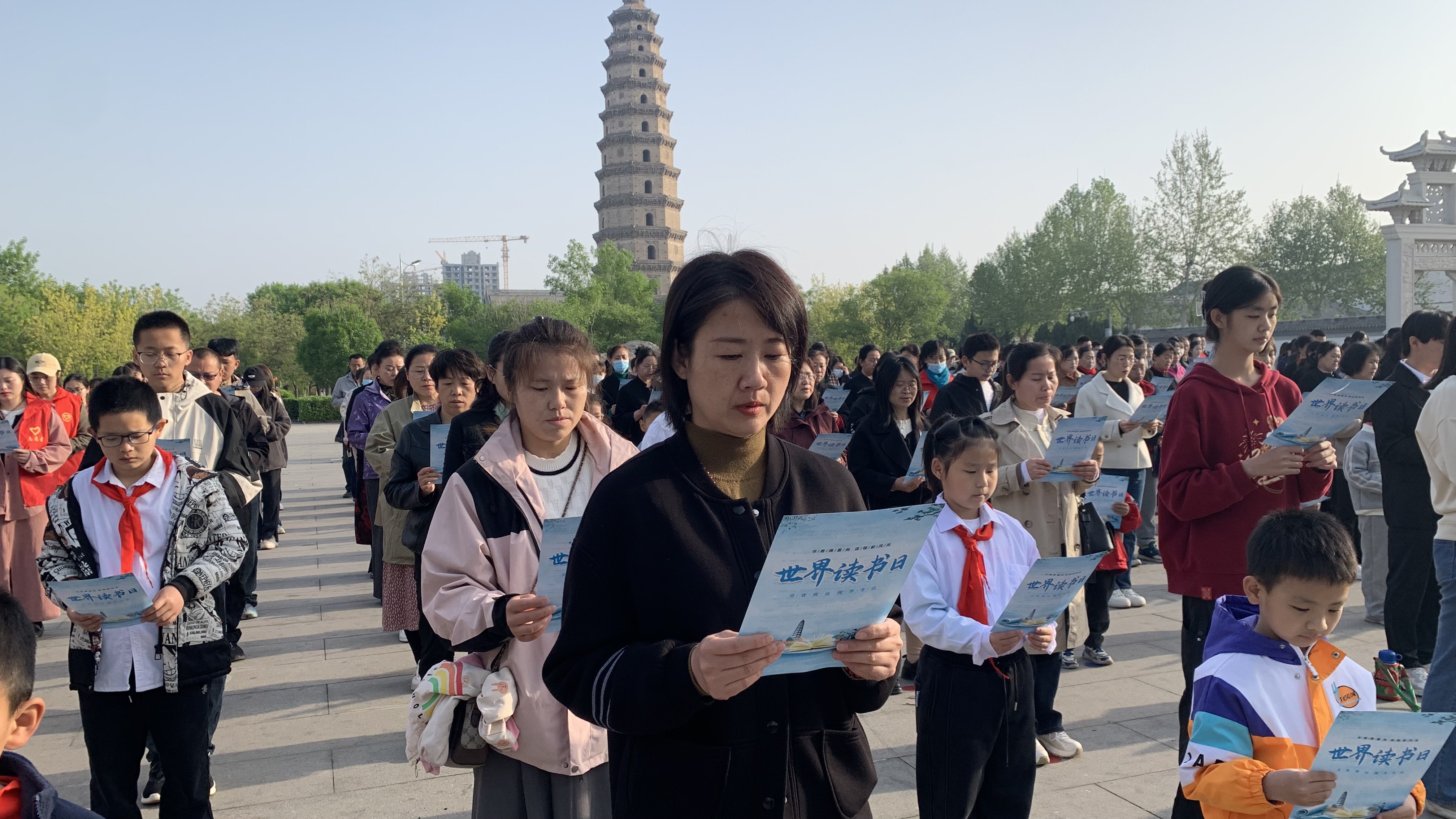 第30个世界读书日来临之际,4月20日,衡水市景县“书香满景州‘读’领新风尚”主题读书会活动在景州塔广场举办。活动有机融合传统文化传承与当代阅读风尚,通过诵读经典、赠阅典籍等丰富载体生动演绎古今对话,吸引景县公益大讲堂师生、社区居民代表以及社会各界志愿者共计400余人共赴书香之约。