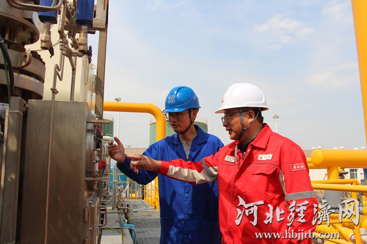 位于任丘石油化工产业集群内的中国石油华北油田职工在检测油气管路。河北经济日报记者 袁立朋 摄