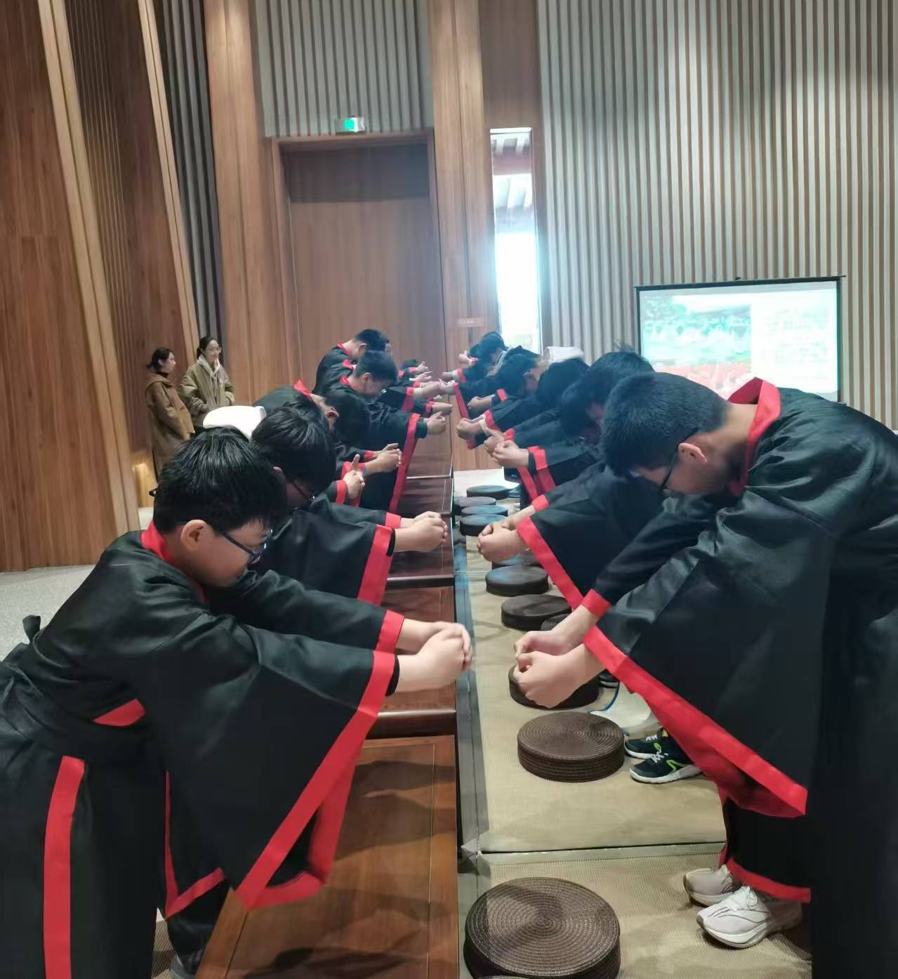 走进青竹博物馆,仿佛踏入一个奇幻的色彩王国。这座以“美术颜料”为主题的知识殿堂展示着世界与中国颜料的发展历程、制作过程,以及青竹企业的成长轨迹。孩子们沉浸在斑斓的多彩世界里,欣赏名家名作,感受色彩的独特魅力。在董子学村,孩子们换上汉服,登上繁露学宫、走进乐乎草屋,学习稽首礼仪、聆听国学课,深刻体会“罢黜百家,独尊儒术”的历史回响。