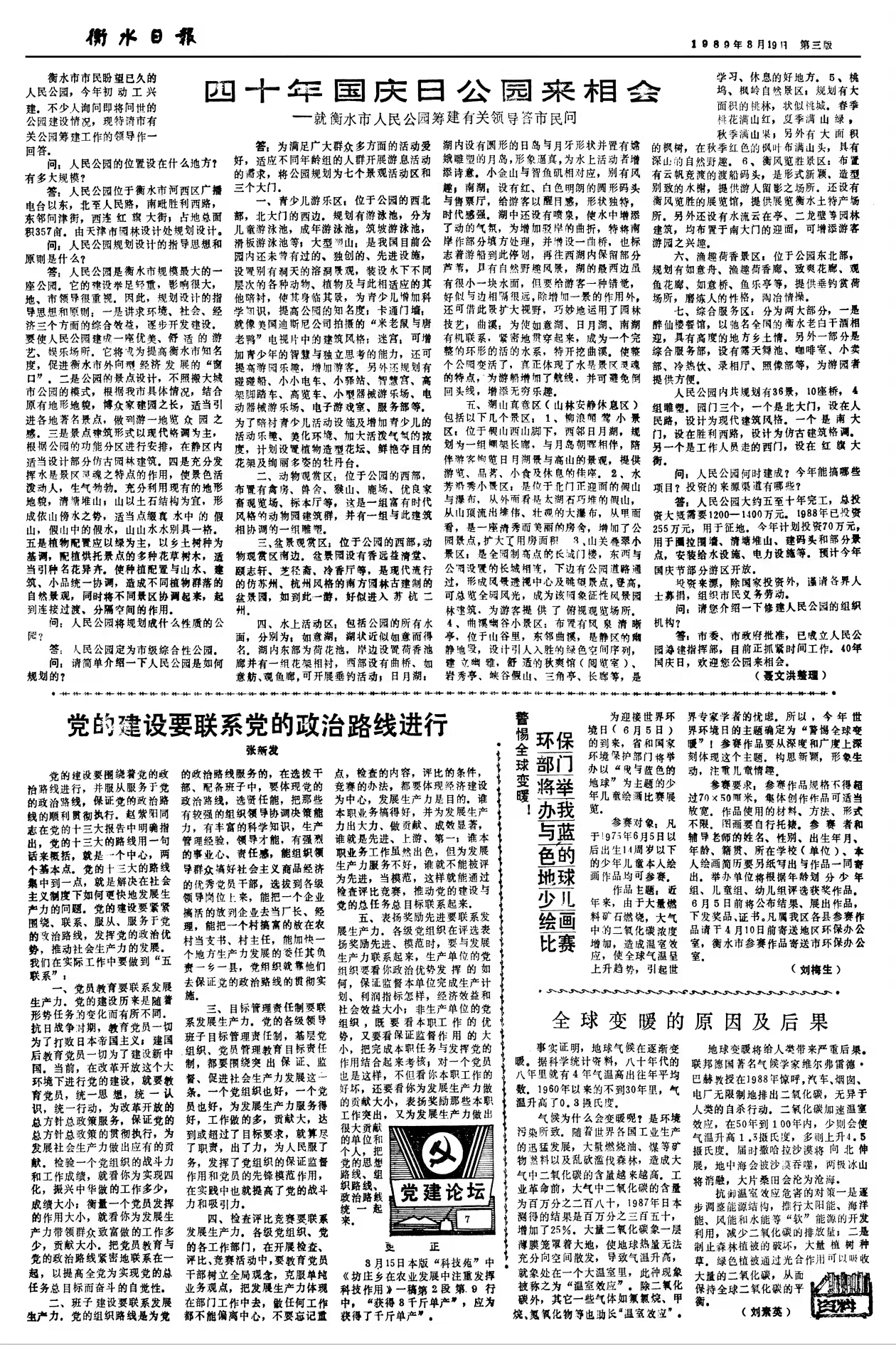 公园作为城市的“绿肺”,见证着经济发展、社会变迁,是城市文明进步的缩影。从“考试考好了,妈妈奖励你去公园”到“吃饭了没?到公园遛一圈”,如今衡水人早已不把“逛公园”当作新鲜事。放眼湖城大地,综合性公园和点状游园星罗棋布,人们尽情享受着家门口的“诗与远方”。《衡水日报》数十年的报道中,记录着我们“家门口的乐园”如何一步步“由点到面”、由简至“精”——