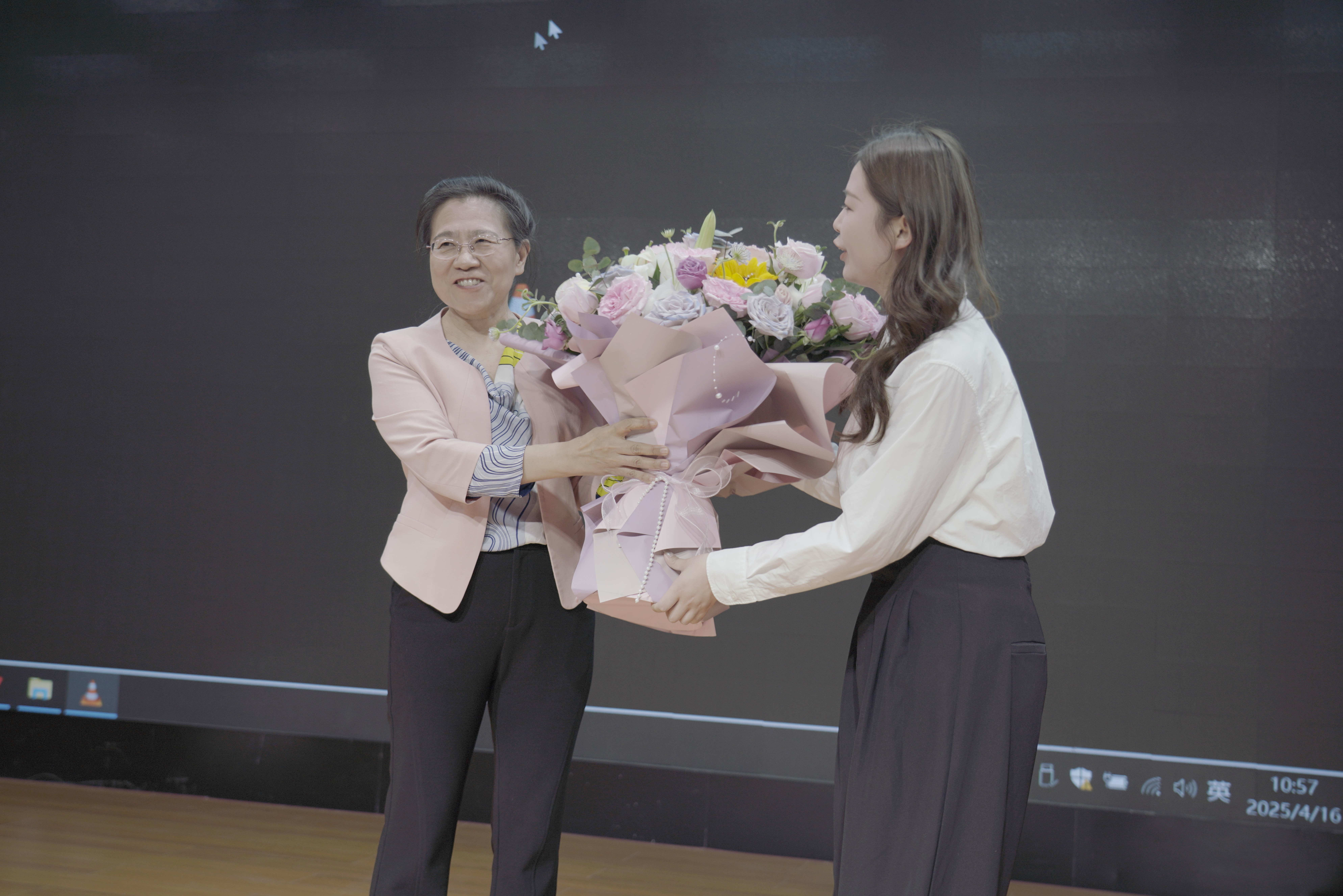 听课老师为苏彦捷教授献花。