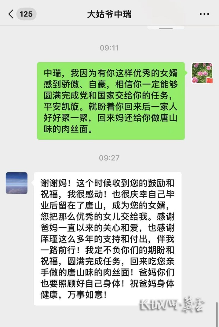 这份来自岳母的暖心叮嘱,让陈中瑞很感动。他表示,很庆幸自己毕业后留在了唐山,成为了唐山女婿,“感谢您把那么优秀的女儿交给我,感谢爸妈一直以来的关心和爱,也感谢庠瑾这么多年的支持和付出,伴我一路前行!我定不负你们的期盼和祝福,圆满完成任务,回来吃您亲手做的唐山味的肉丝面!"