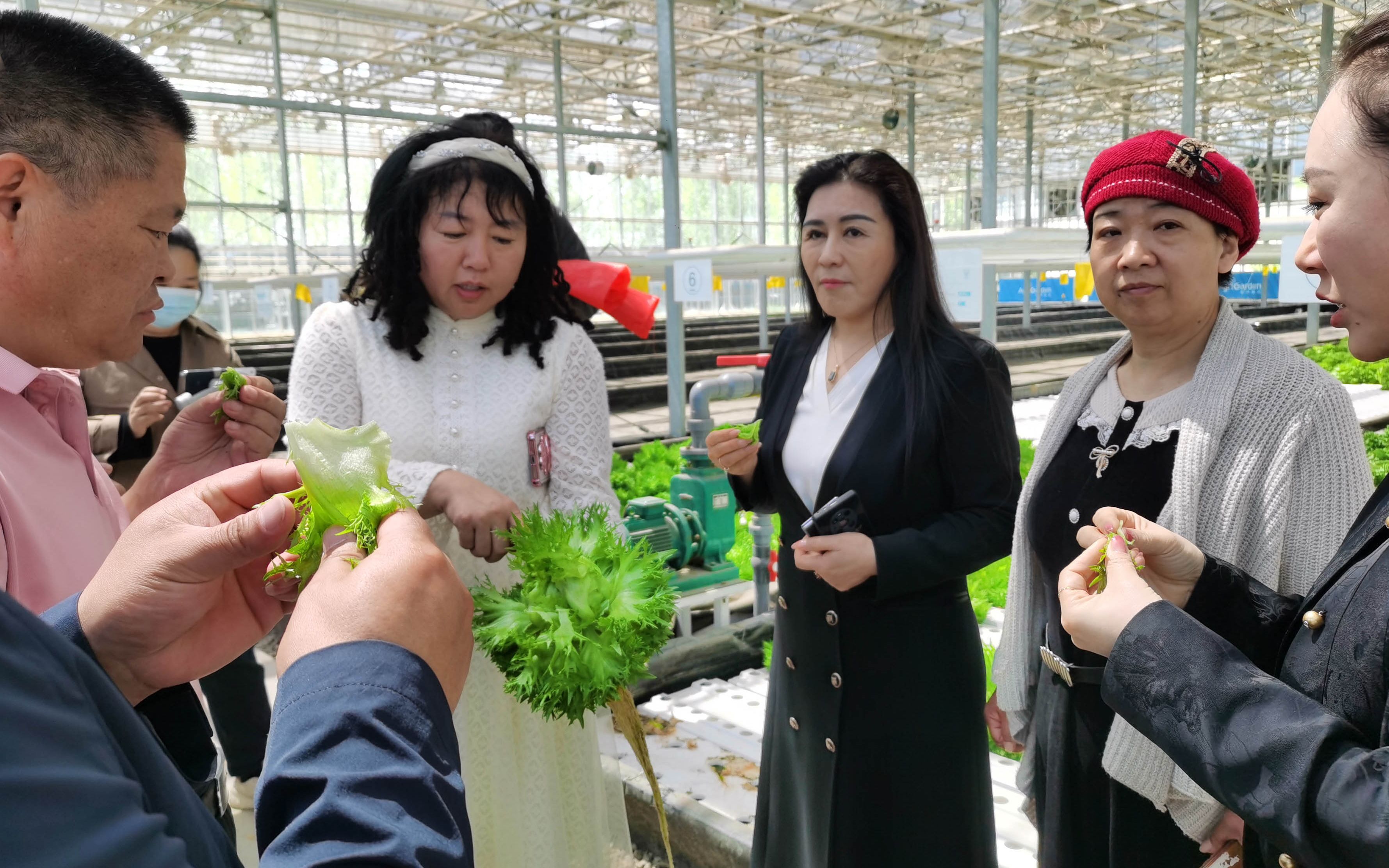 天空农场、雨林温室、无土栽培、自动采摘……这就是处处彰显着时尚感、现代范儿的绿魔方衡水国际设施园艺产业园。产业园整体分为垂直农业综合体、智慧农业展示区、都市休闲农业区三个功能分区,以智慧农业为核心,运用无线传感、远程数据采集等技术,实现种植生产过程的精细化管理,智能展示从“种子到餐桌”的现代农业全过程。考察团走进亲子互动、果蔬采摘、太空种植等多个“沉浸+”体验区,感受田园农业的“诗与远方”。考察团成员们认真聆听工作人员的介绍,不时提问交流,对现代农业的未来发展充满了期待。