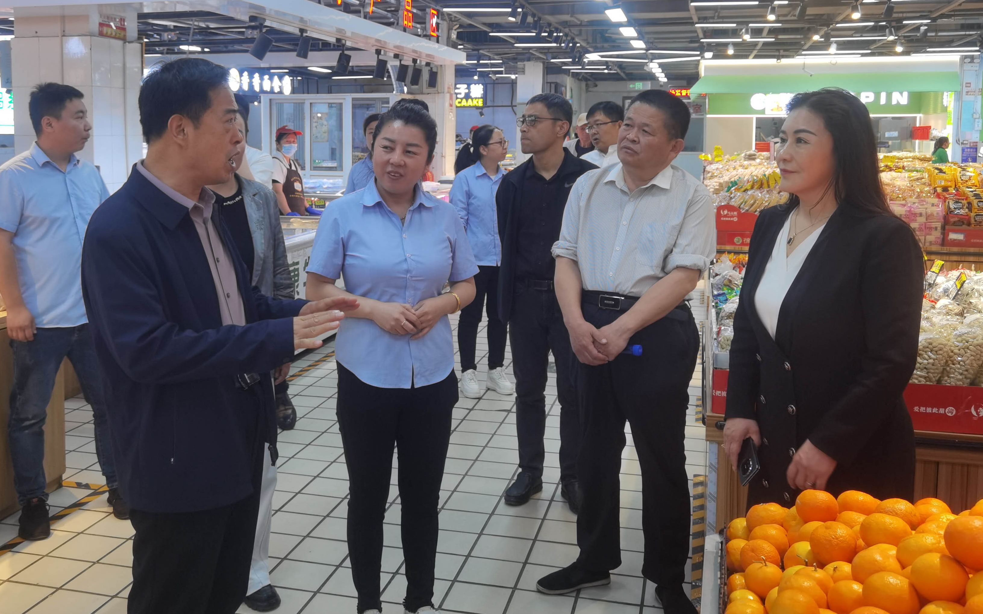 考察团在吉美超市(胜利路店)调研。彭宝辉 摄