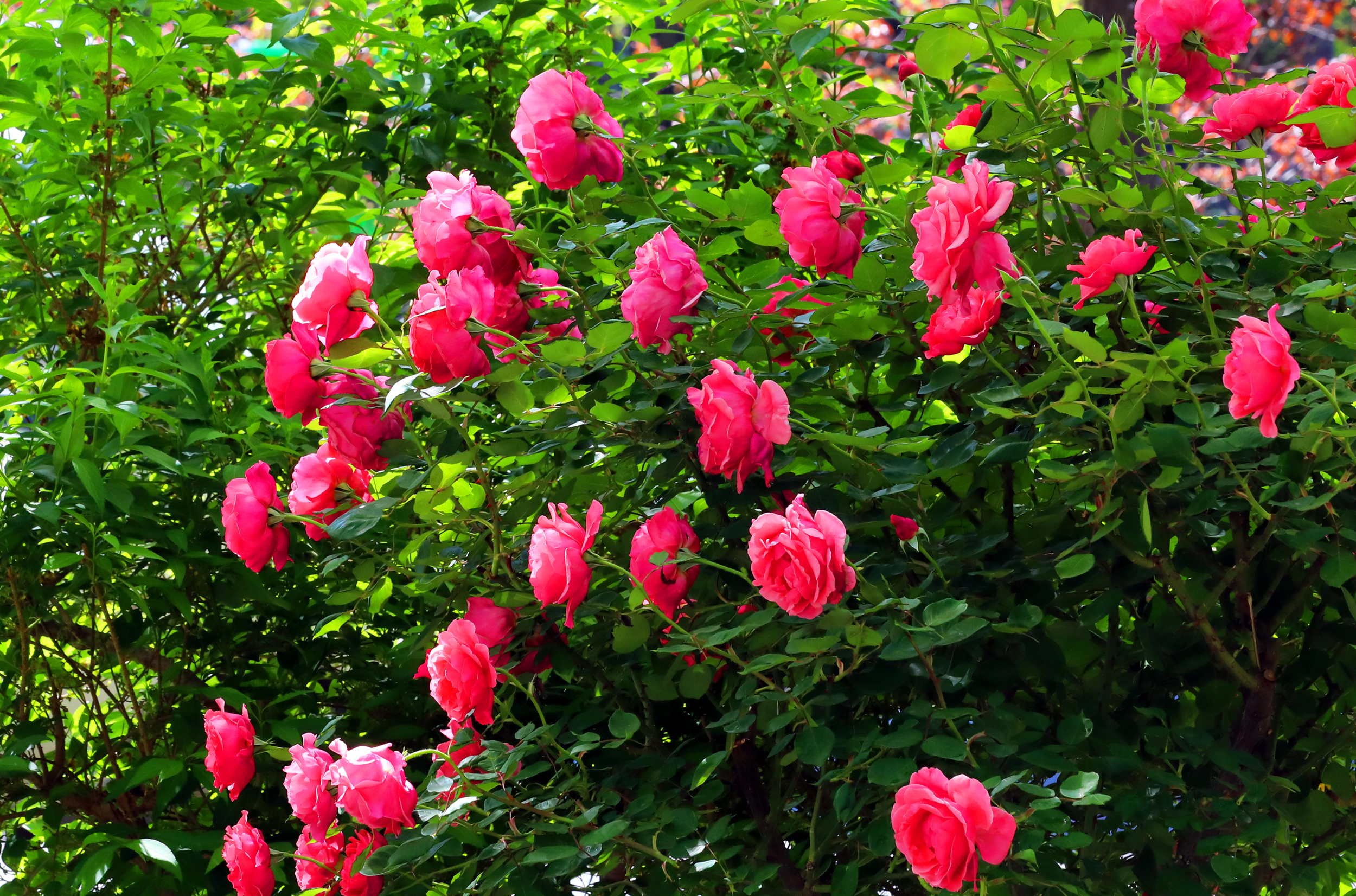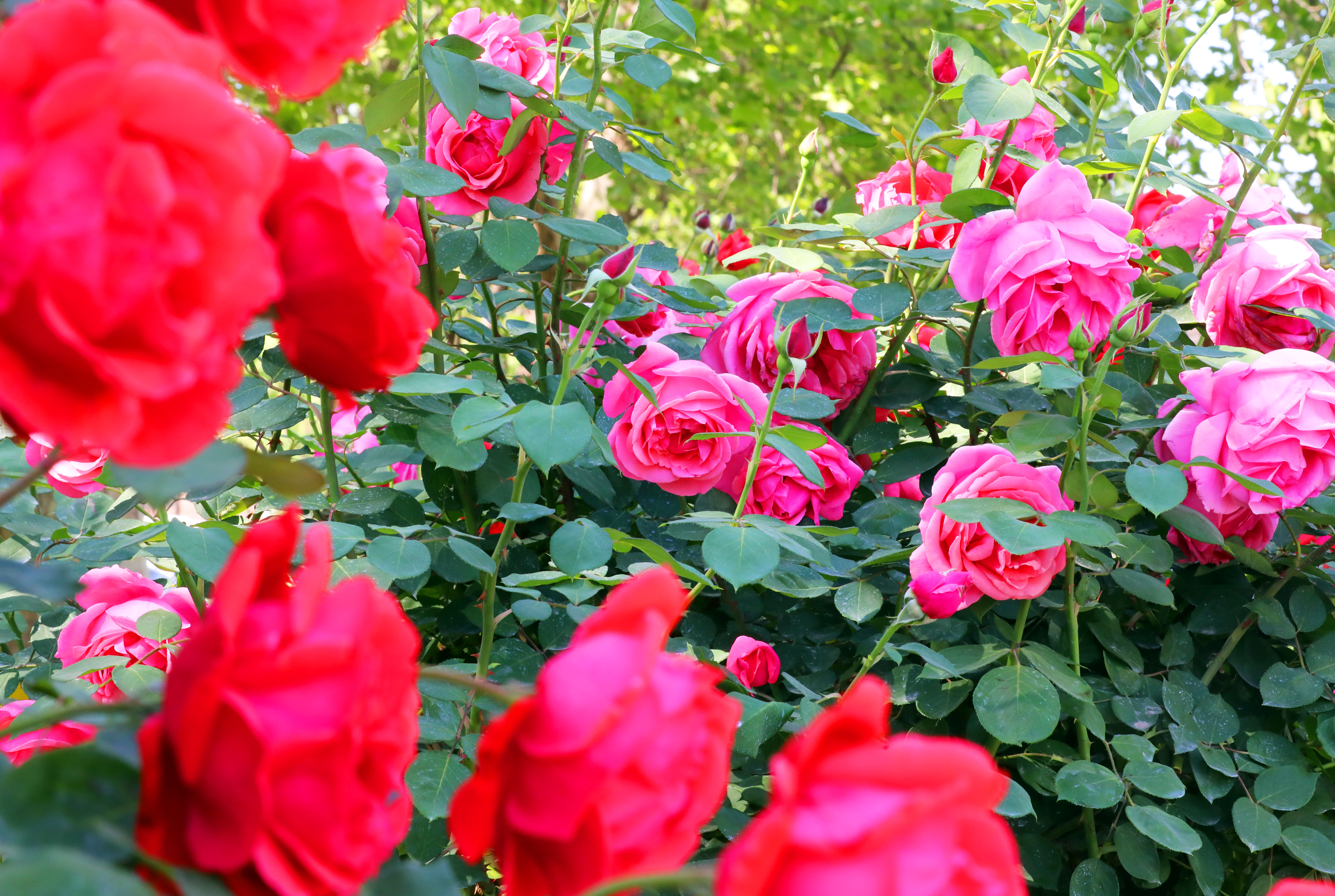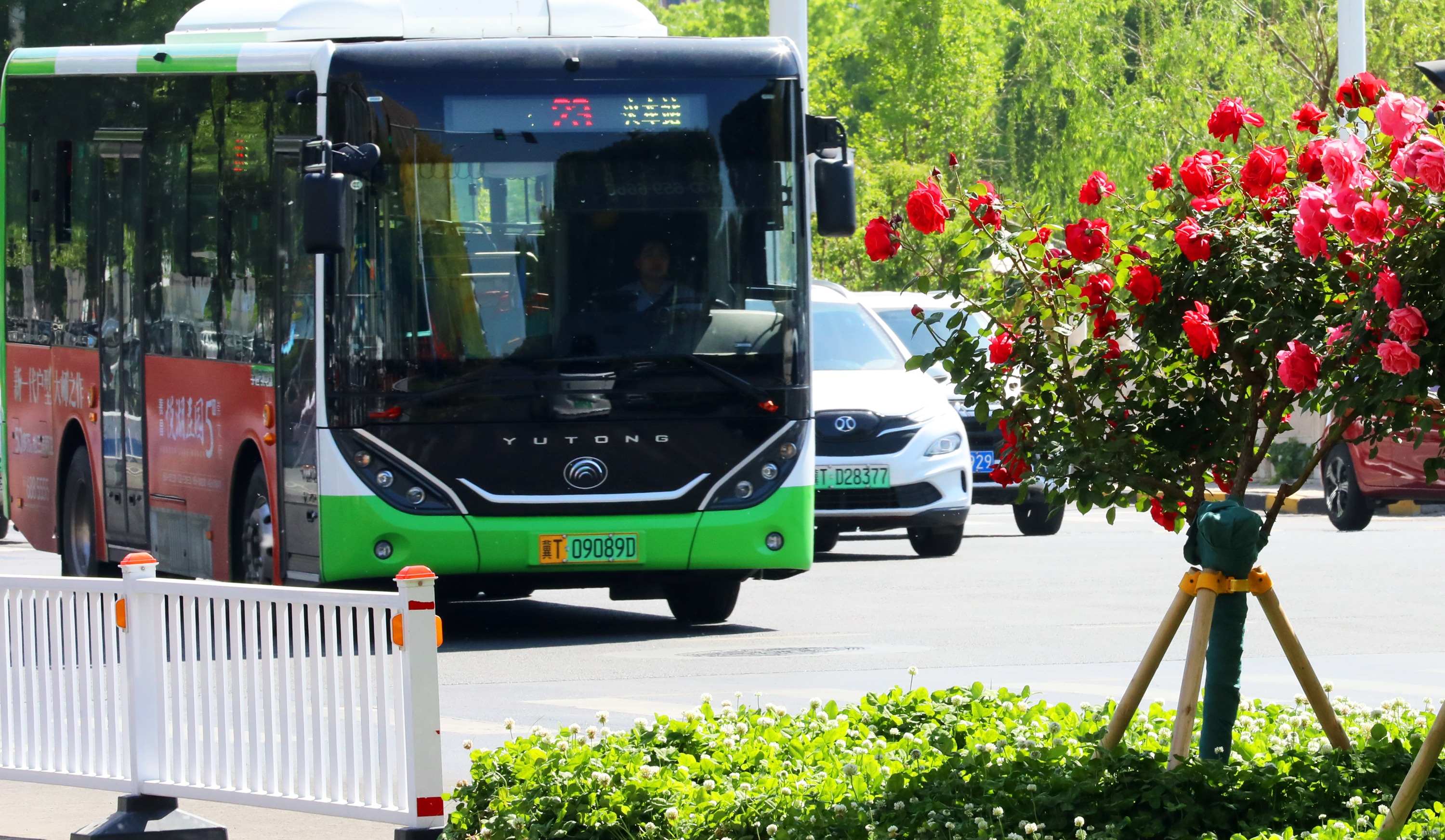 4月28日,记者来到前进大街与人民路交叉口路段,映入眼帘的是道路两旁开得如火如荼的树状月季。与往年同期相比,今年的树状月季仿佛格外争艳,花开得愈发繁茂且艳丽。瞧,那红色的花朵热烈奔放,似燃烧的火焰,充满激情;粉色的温柔雅致,如同温婉的少女,散发着柔和的魅力;黄色的则璀璨夺目,宛如金色的阳光,耀眼而迷人。一排排造型优美、疏密相间的树状月季整齐排列着,让人看得目不暇接。