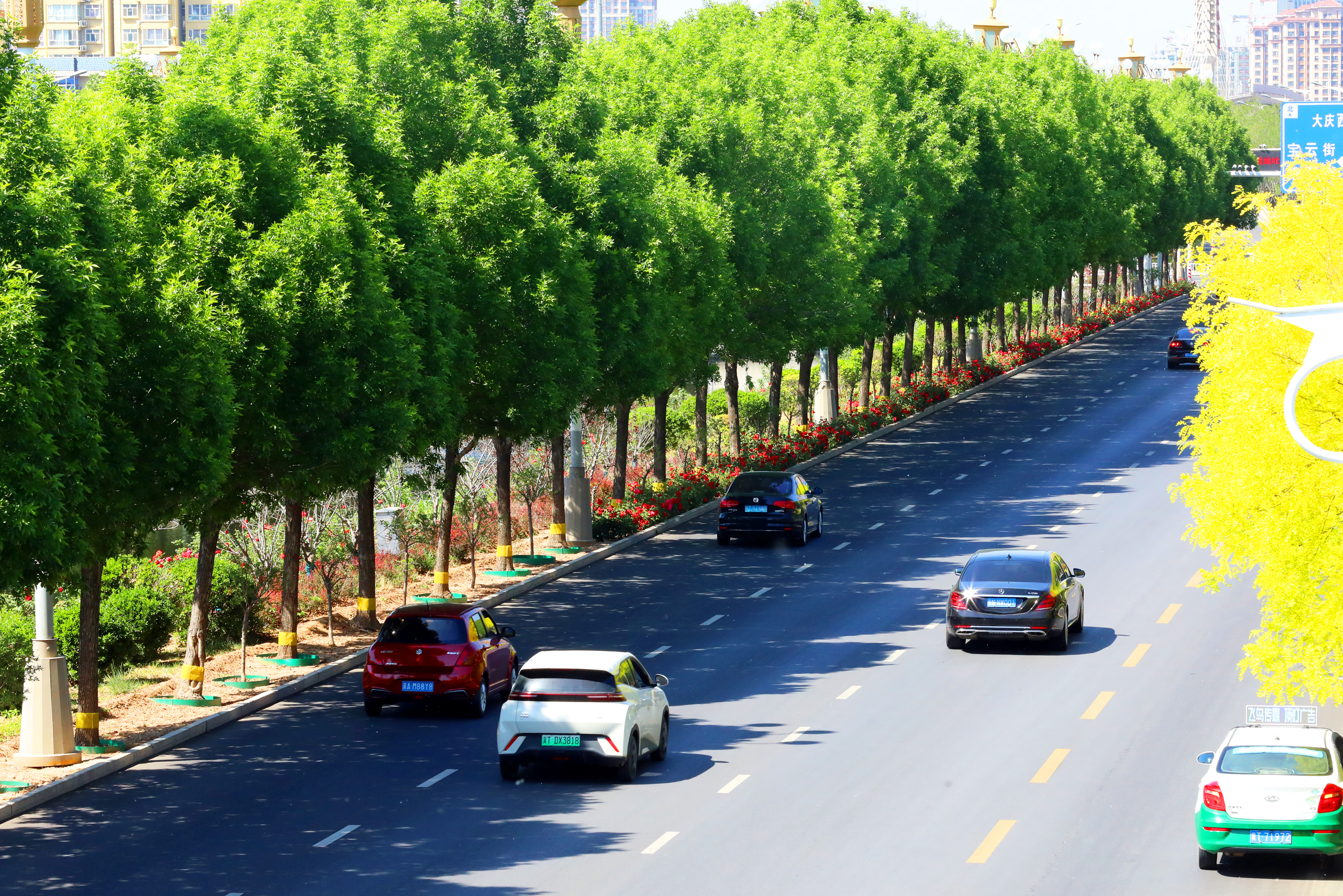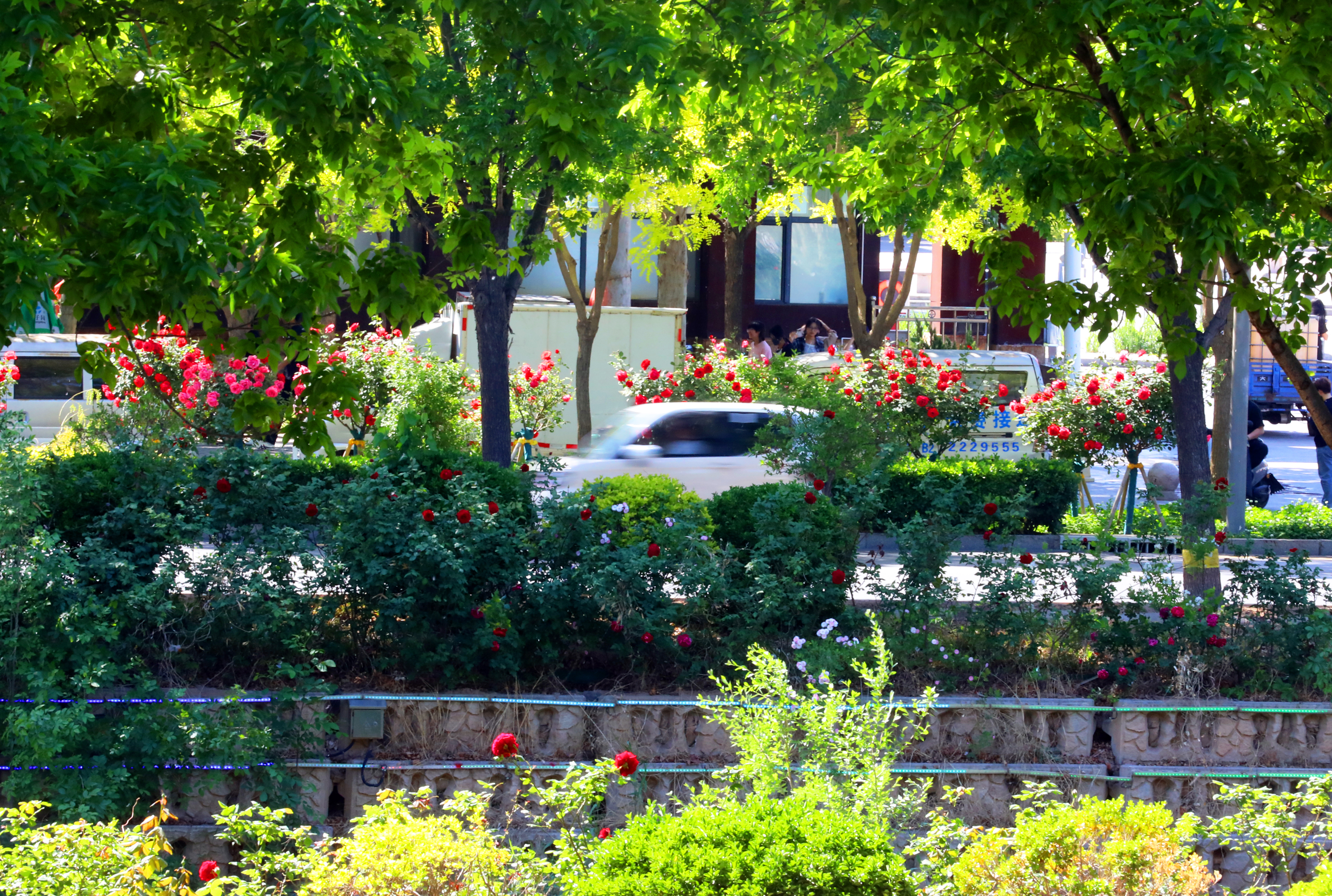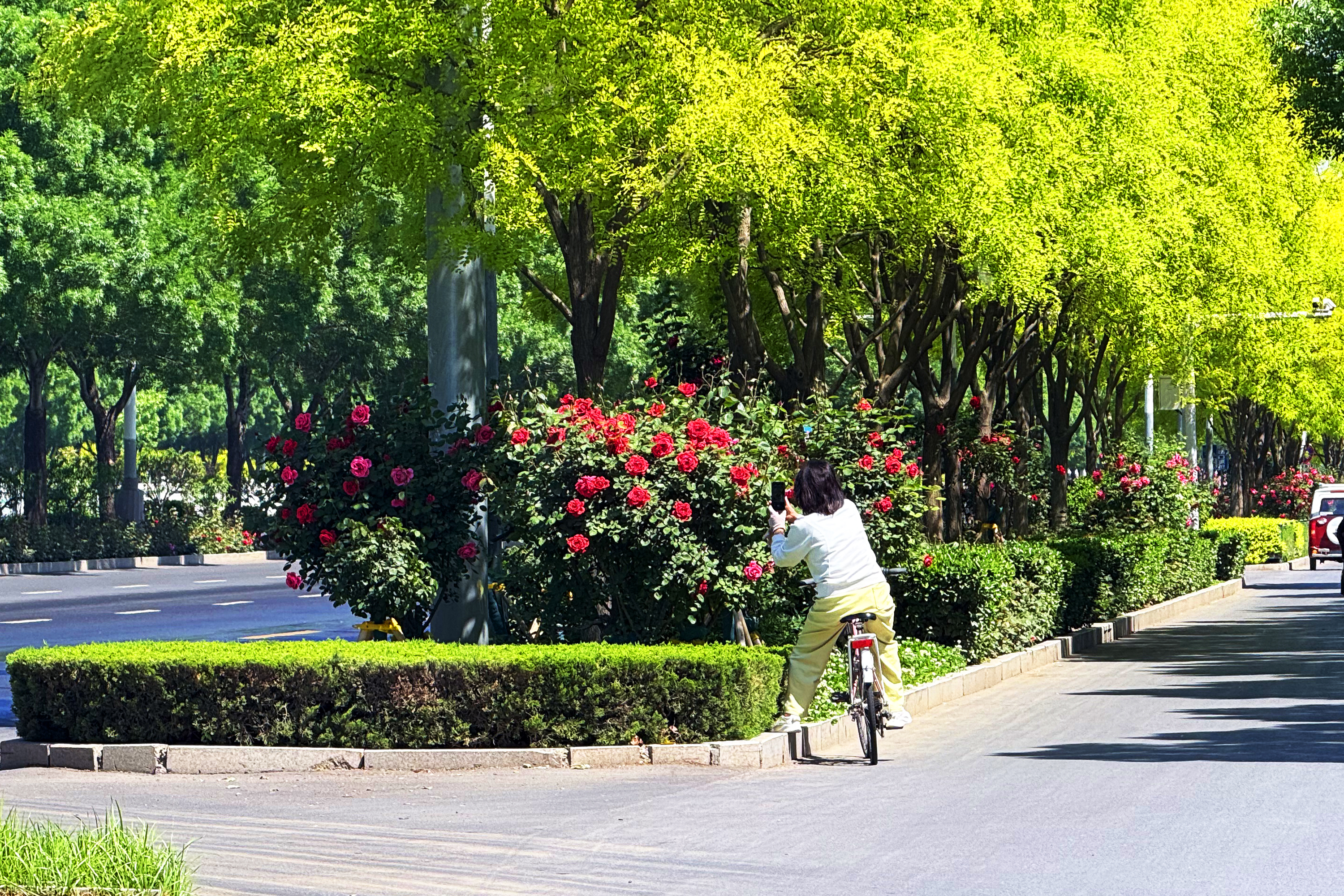 近日,市区前进大街迎来了树状月季的盛花期,绚丽多彩的花朵竞相开放,成为城市中一道亮丽的风景线。