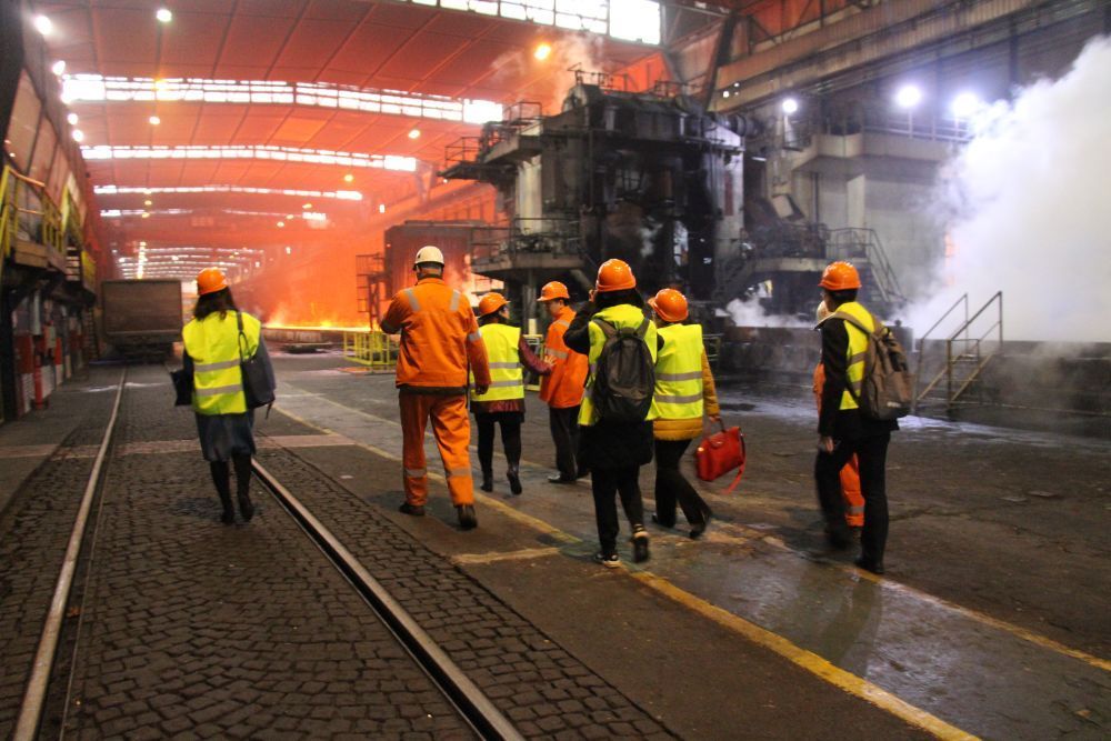 2018年12月4日,在塞尔维亚斯梅戴雷沃,河钢塞尔维亚有限公司中方管理人员在钢铁厂内查看。新华社发(河钢塞尔维亚有限公司供图)