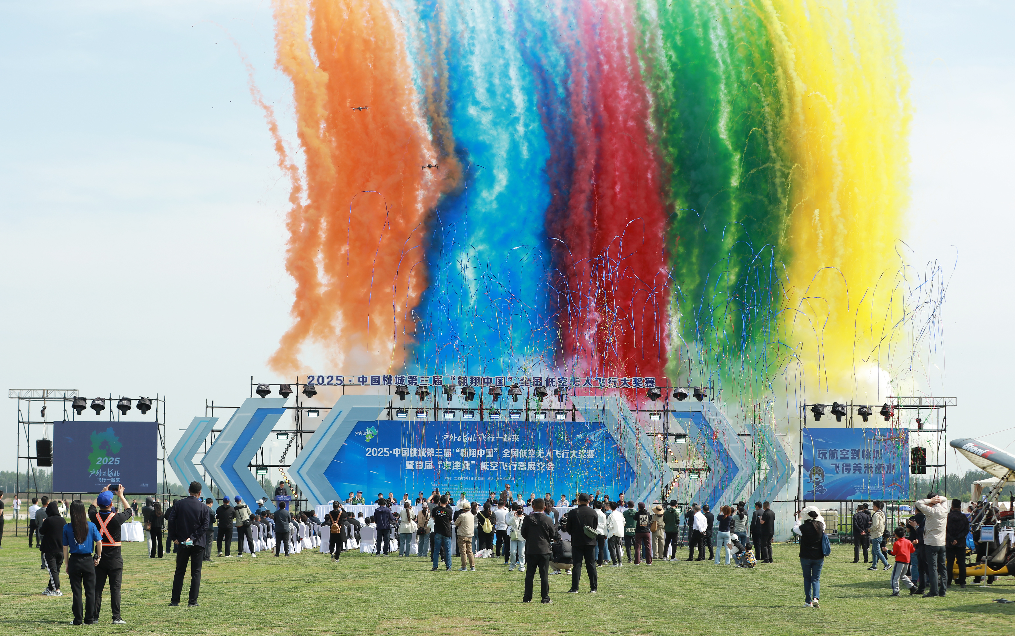 2025·中国桃城第三届"翱翔中国"全国低空无人机飞行大奖赛暨首届"京津冀"低空飞行器展交会开幕式现场。