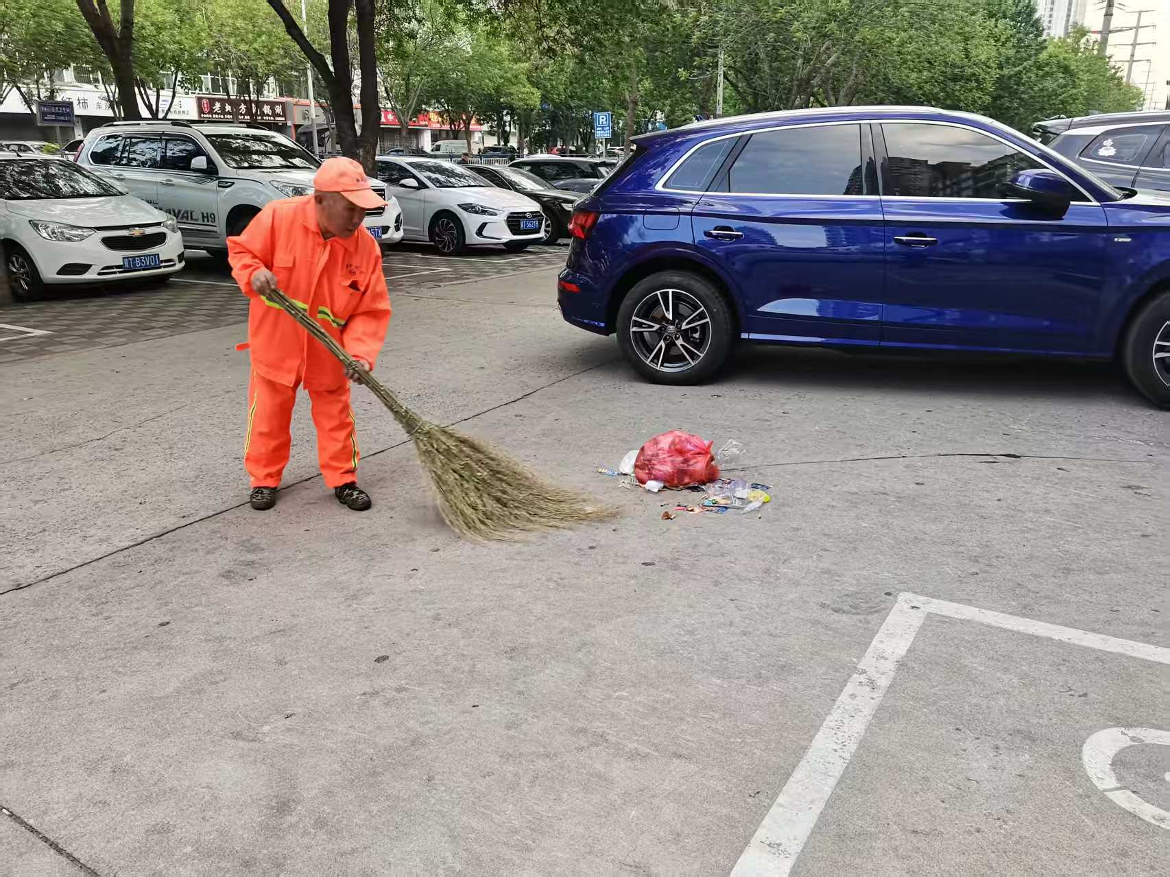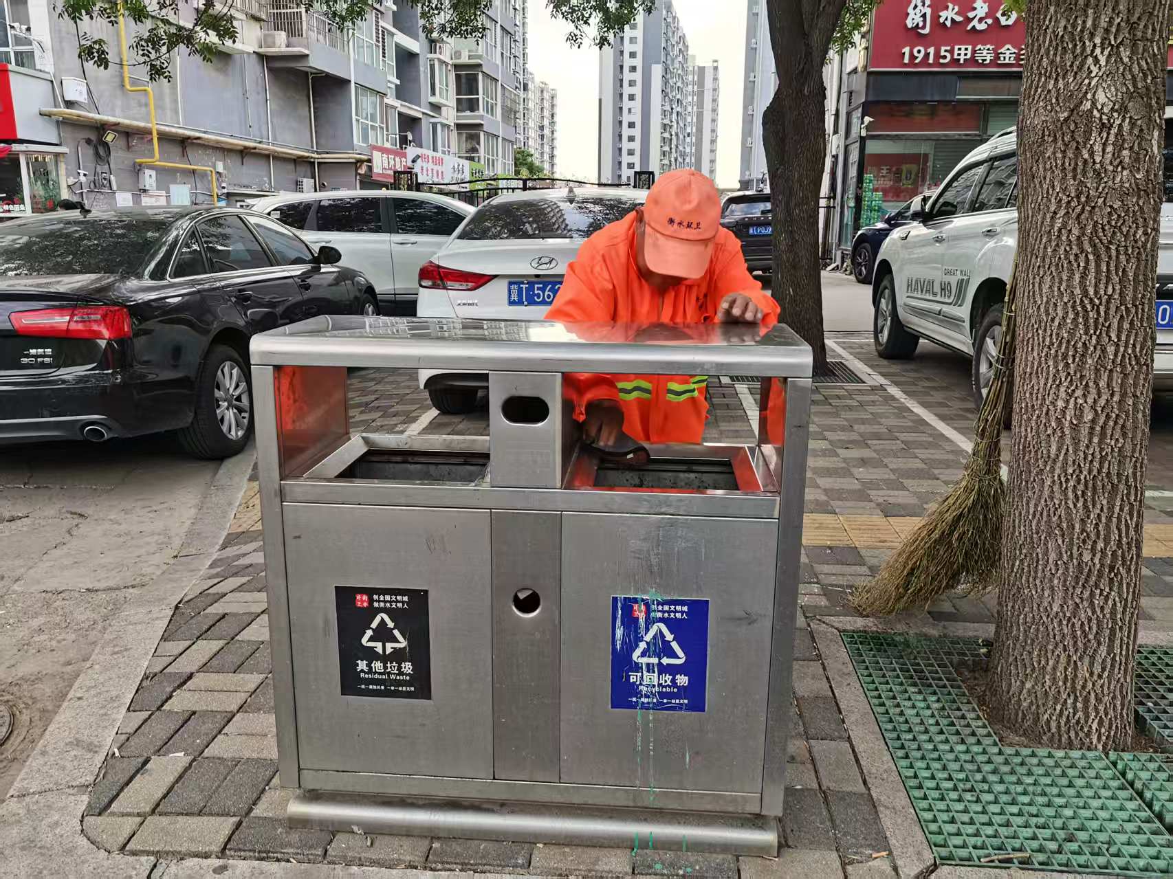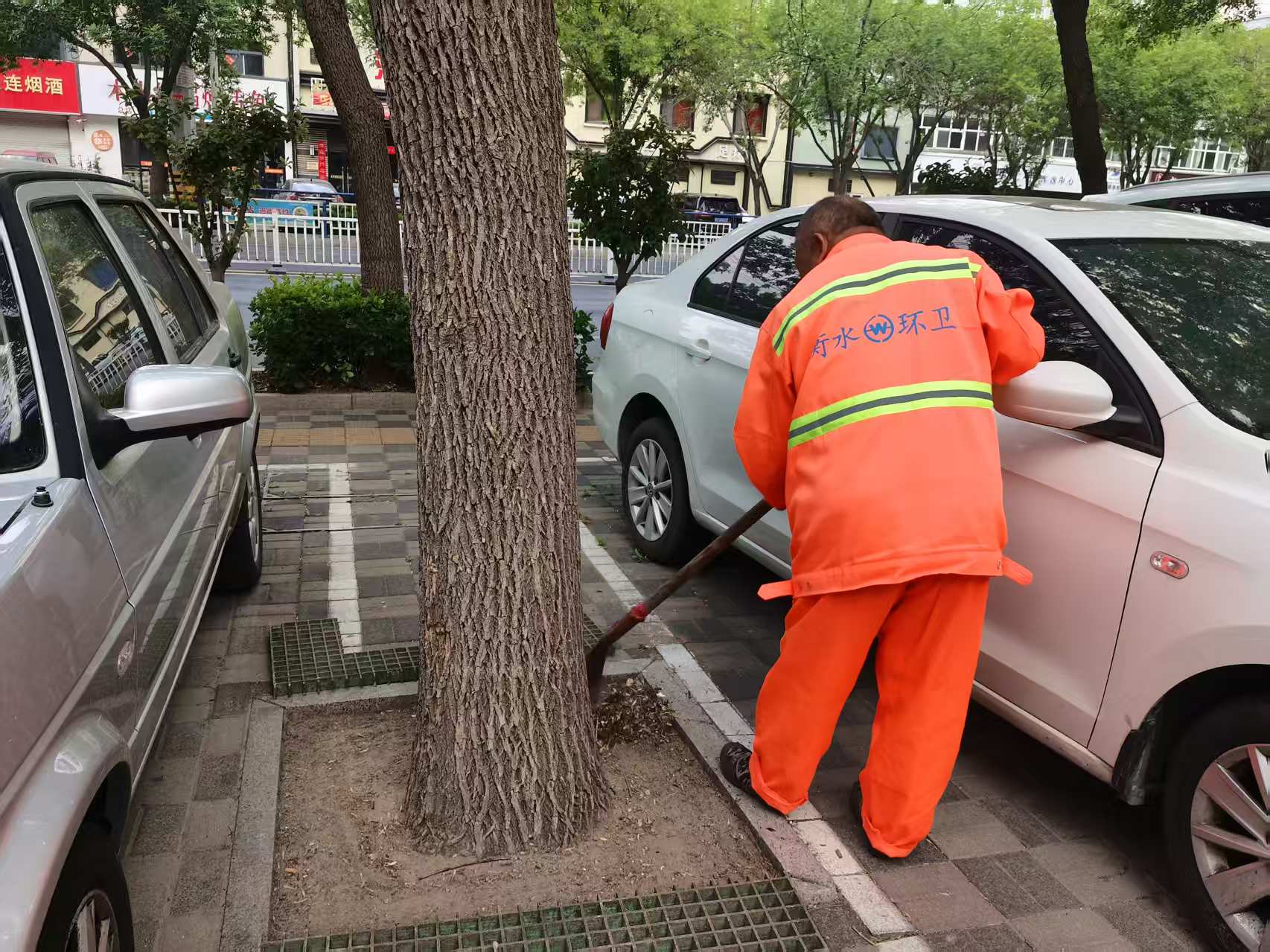 从滏阳一路与育才大街交叉口沿着育才大街一路向北,每隔几十米就看到一位身穿橙色工作服的环卫工人,他们有的在清扫路面,有的认真清掏着果品箱,有的弯腰清理树坑;大街上,洒水车、垃圾收运车、洗扫车也相互配合开展作业,街道渐渐变得整洁,空气也更加清新。