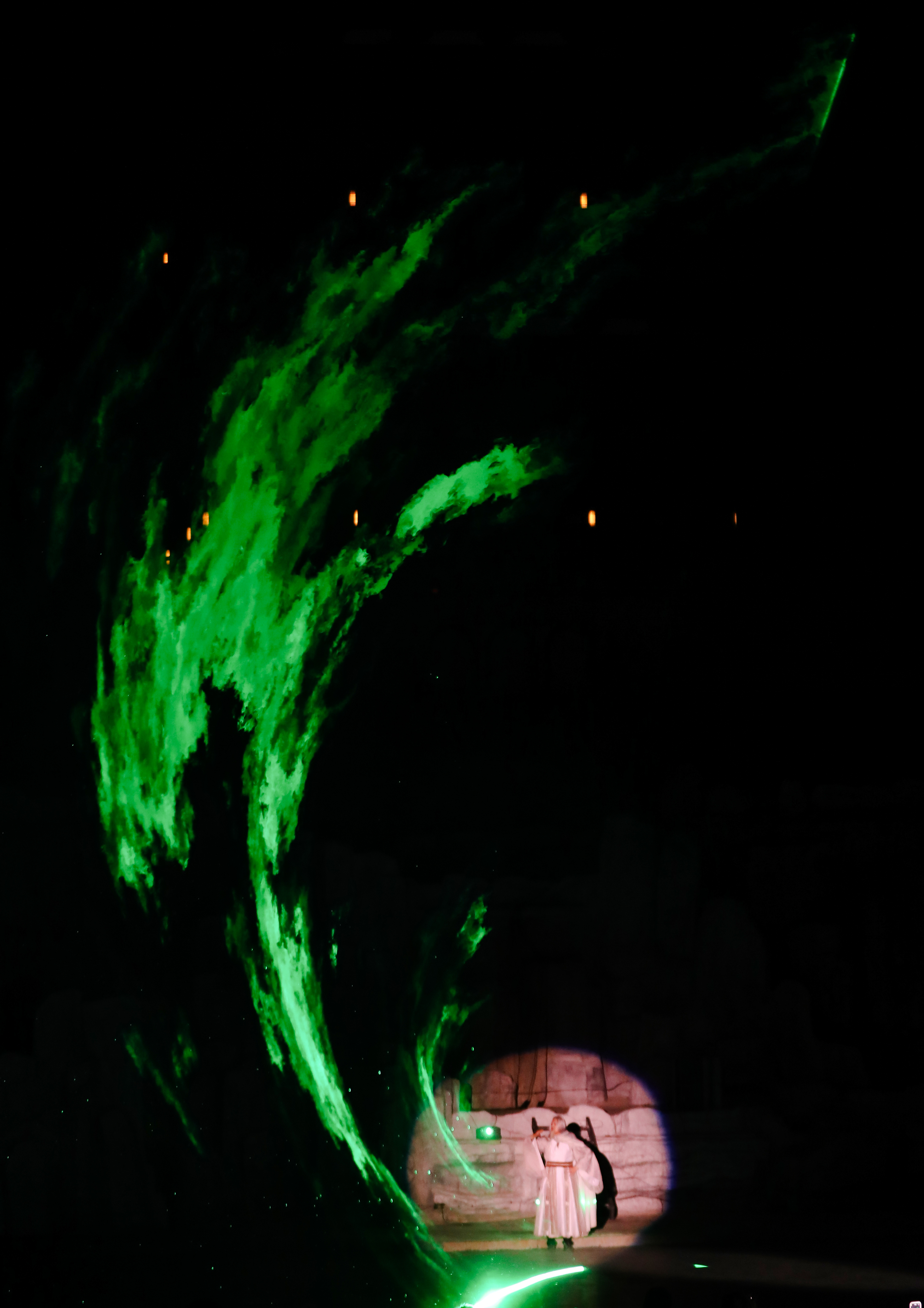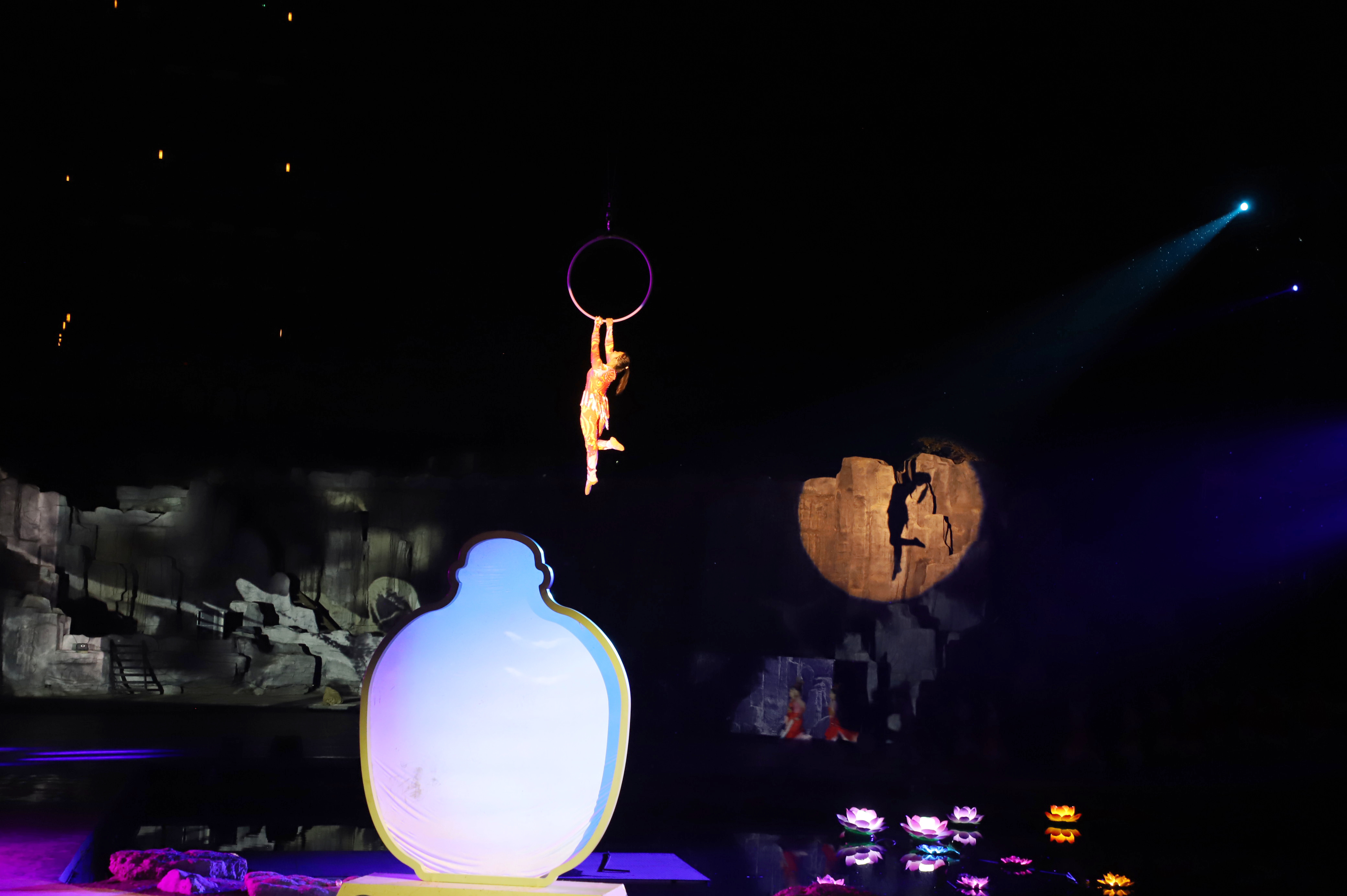 演出运用现代科技,60余名演员倾力演绎,新增凤凰涅槃场景与无人机互动体验,为观众带来一场震撼的视听盛宴。首演当日,景区游客近2万人,众多游客被这场文化盛宴吸引,纷纷购票观看。
