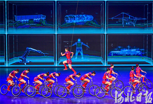 灯光一转,湖面上高适与王之涣泛舟对饮,诗酒唱酬。再看观众席间,舞者持酒器与众人互动,一盏衡水老白干贯穿古今,共饮香醇绵长的衡水滋味。“喝酒咯!”响亮的号子把众人注意力拉回舞台,杂技演员将酿酒的地缸高高抛起又稳稳接住,现场欢呼声不绝于耳。冀州焖饼、烤鸭蛋、饶阳杂面、龙凤贡面……地方美食在数来宝中一一亮相,来自石家庄的郭女士不禁感叹:“原来衡水不仅有自然美景和历史文化,还有这么多特色美食,这次来玩一定得尝尝!”