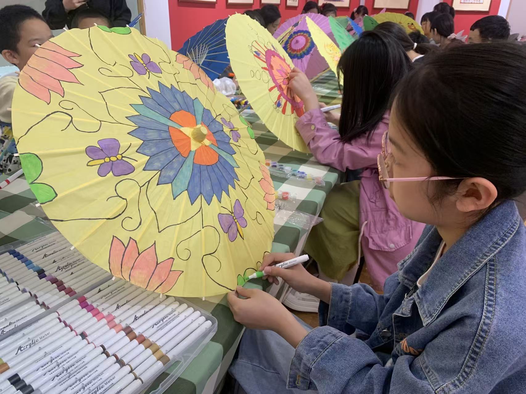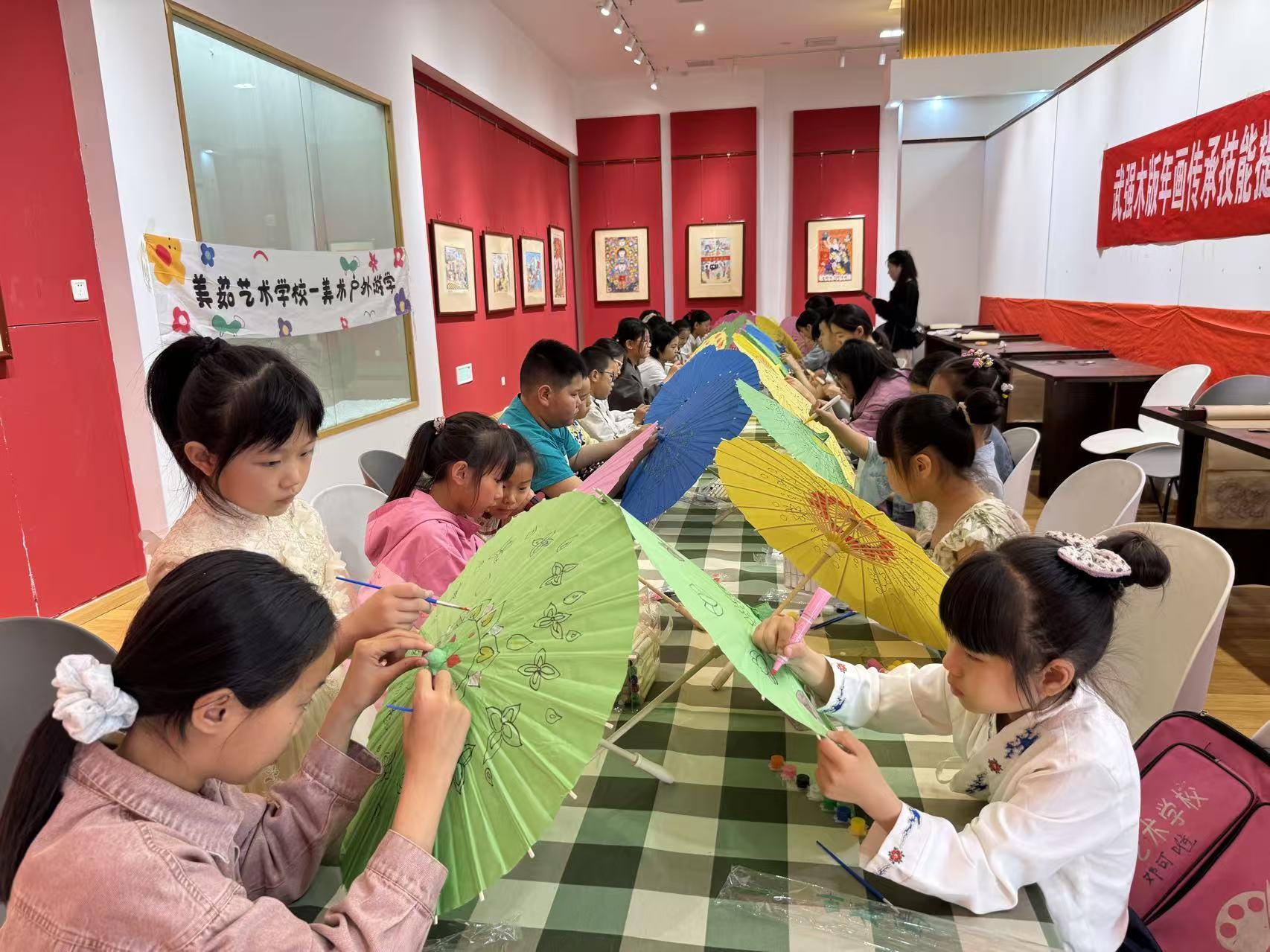 本次活动由武强年画博物馆联合美茹艺术学校共同策划,活动巧妙构建“参观+创作”的联动模式,实现了文化与艺术的深度交融,让传统年画元素在油纸伞面焕发出新的活力,完成传统文化的现代演绎,这一创新也为年画艺术的传承带来新的动力。