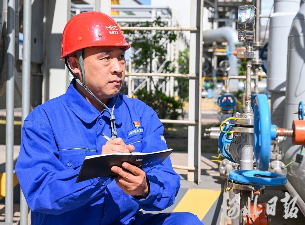5月1日,李利杰在巡检设备。河北日报记者耿辉摄