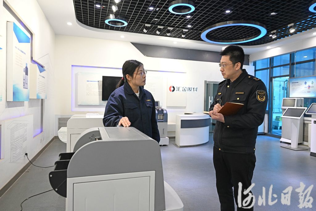2月8日,石家庄市高新区市场监督管理局知识产权专员(右)在河北汇金机电股份有限公司了解企业专利技术保护情况。河北日报记者 张昊摄