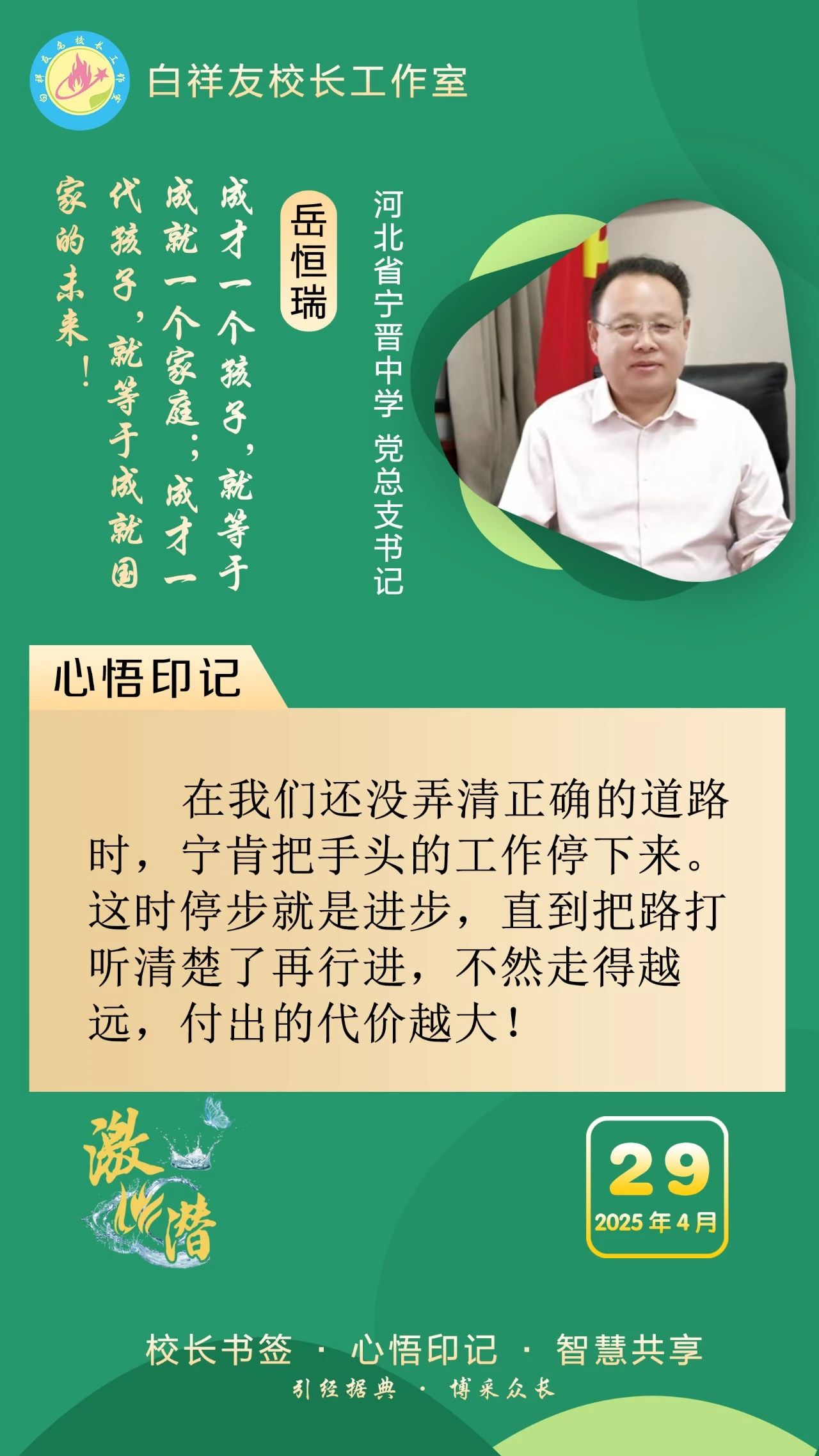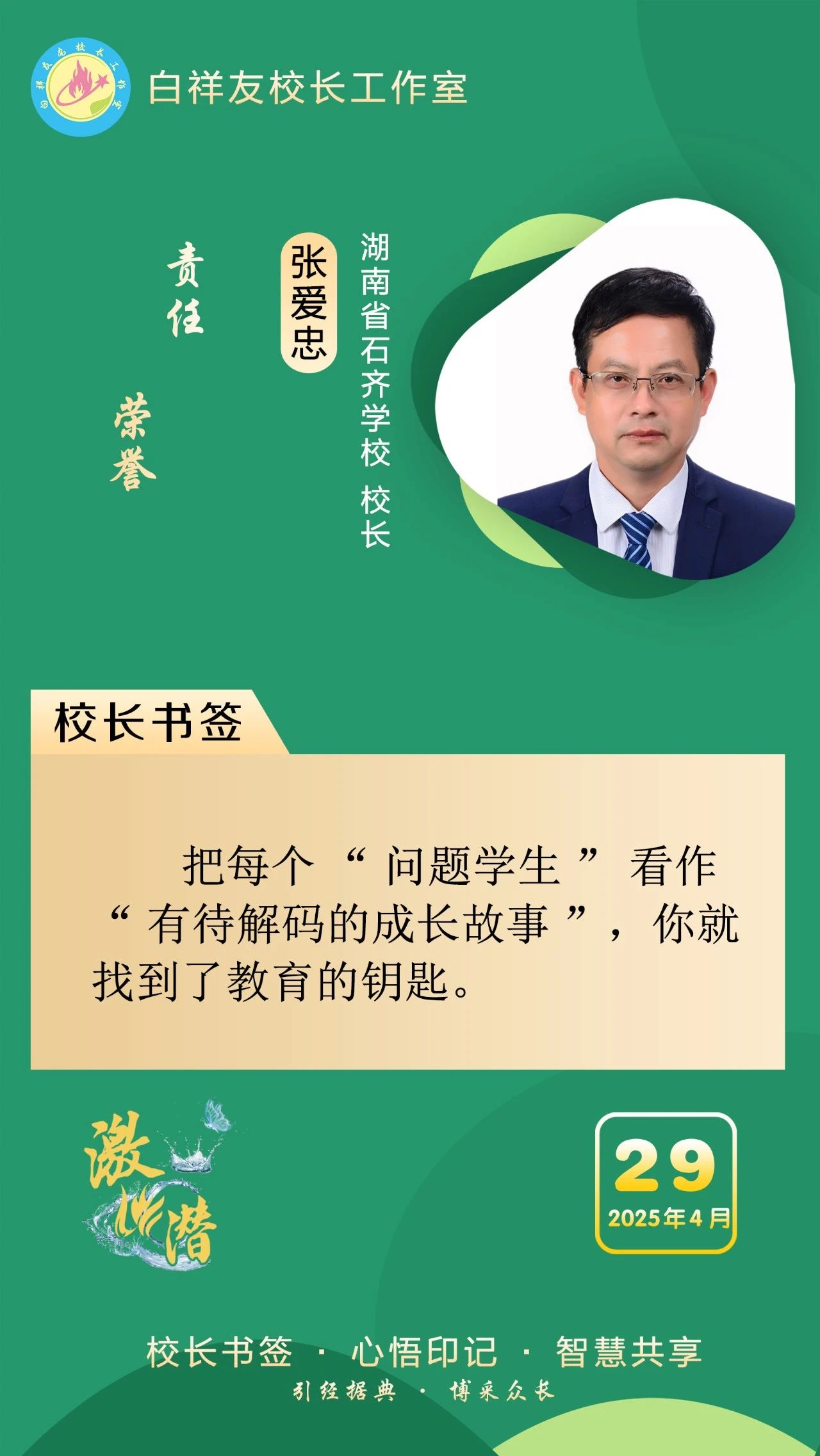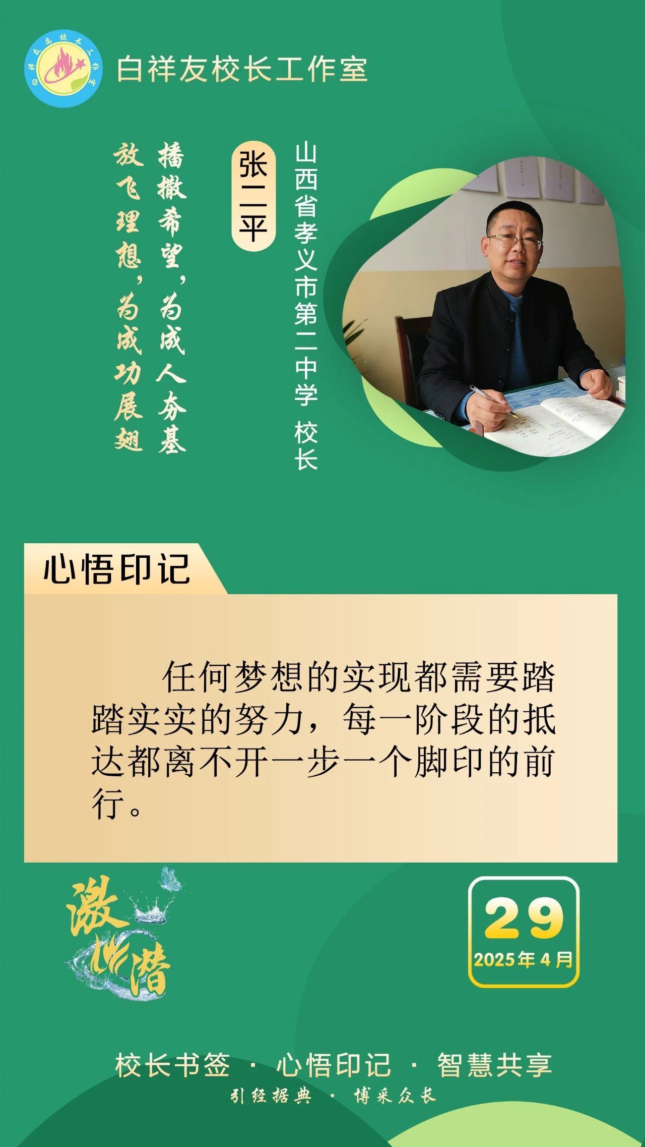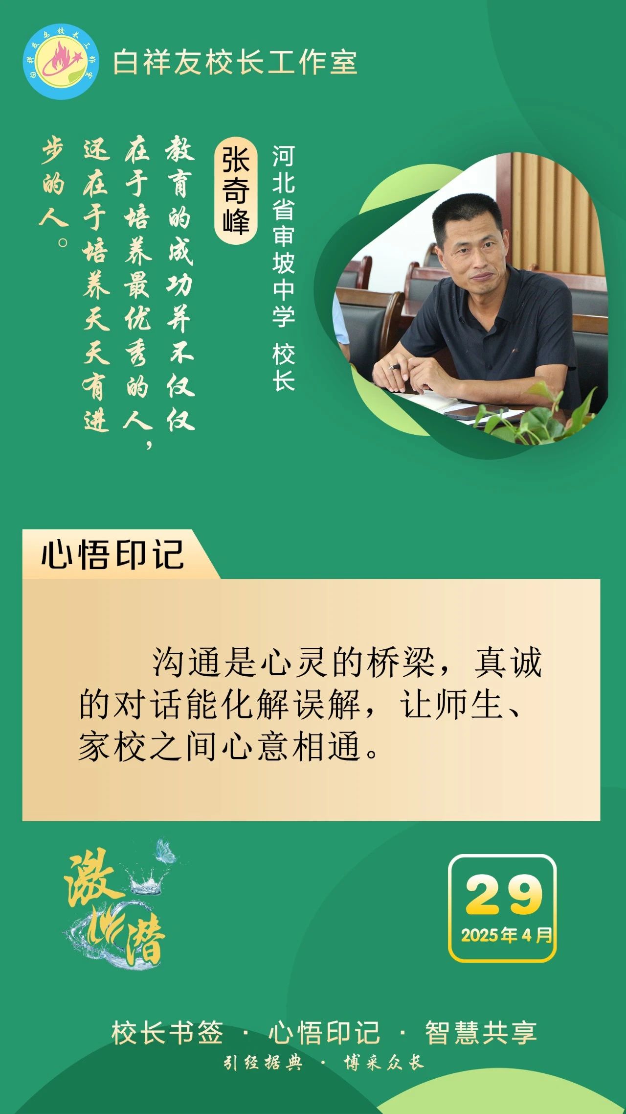 “白祥友校长工作室”成立于2019年4月,是教育部“国培计划”中小学名校长领航工程、河北省首批名校长工作室,目前省内外成员校59所。工作室坚持“资源共享、智慧共融、互助共赢”理念,已成为思想碰撞的交流场,资源共享的品牌站,成果展示的辐射源。