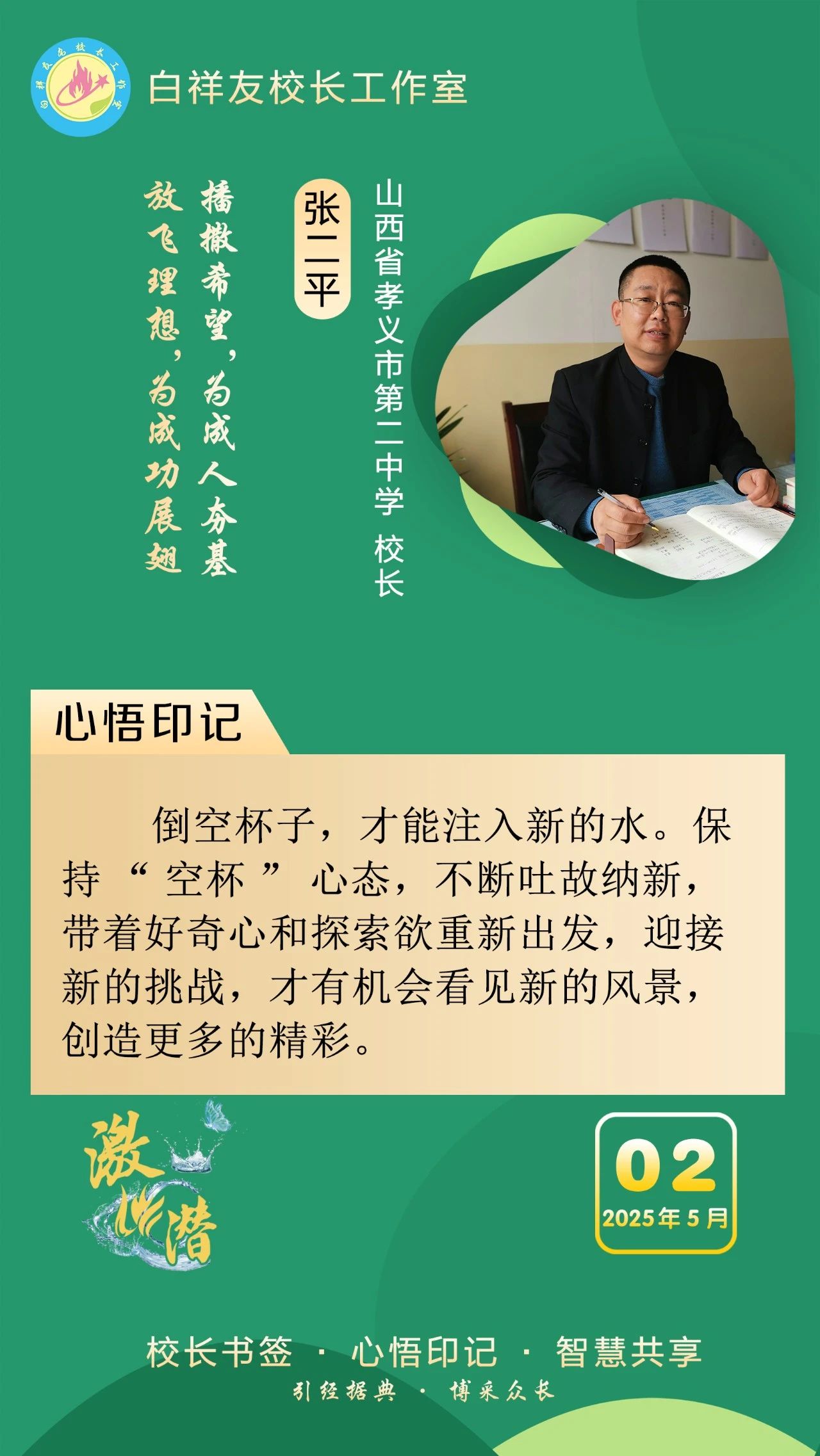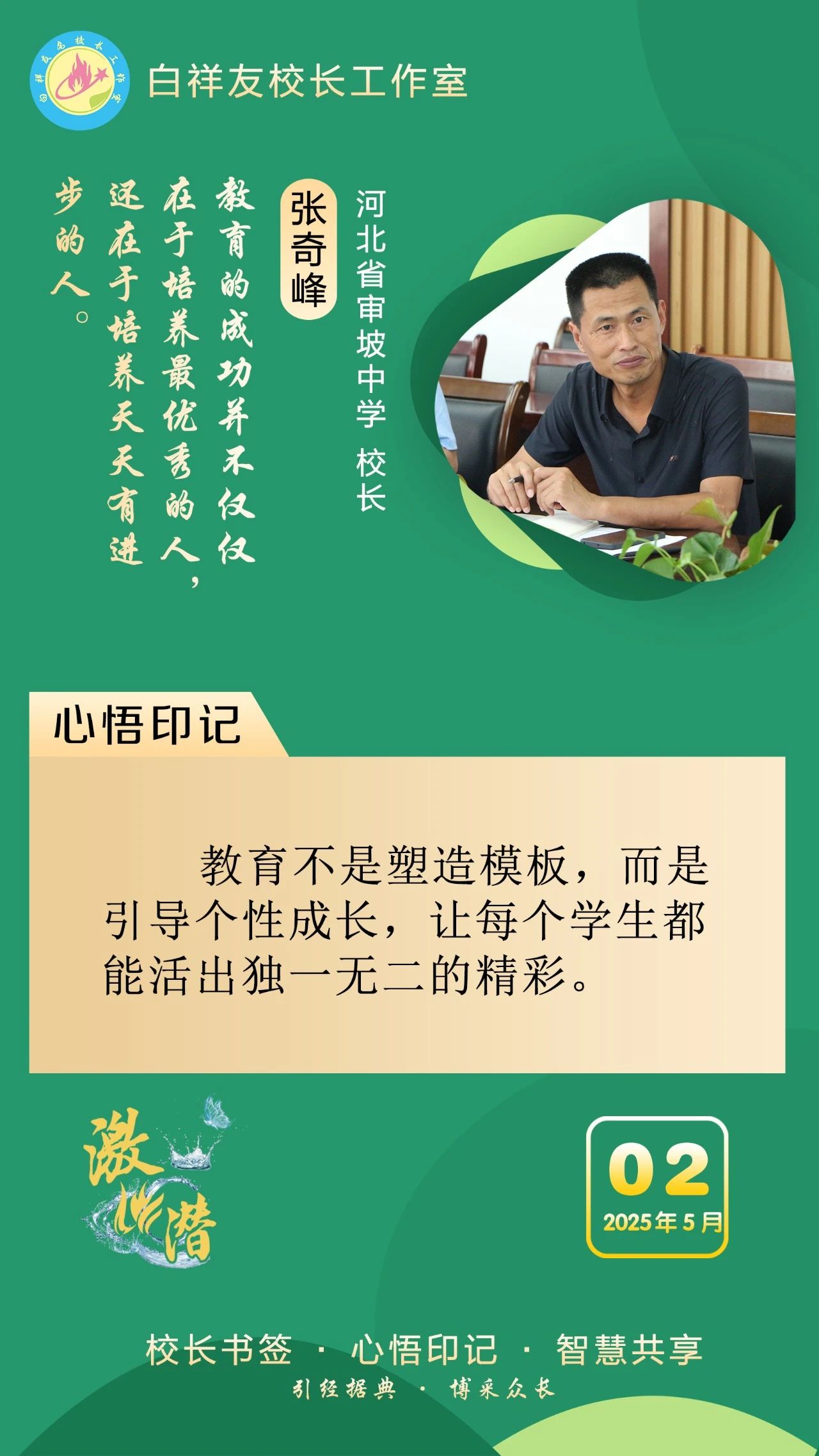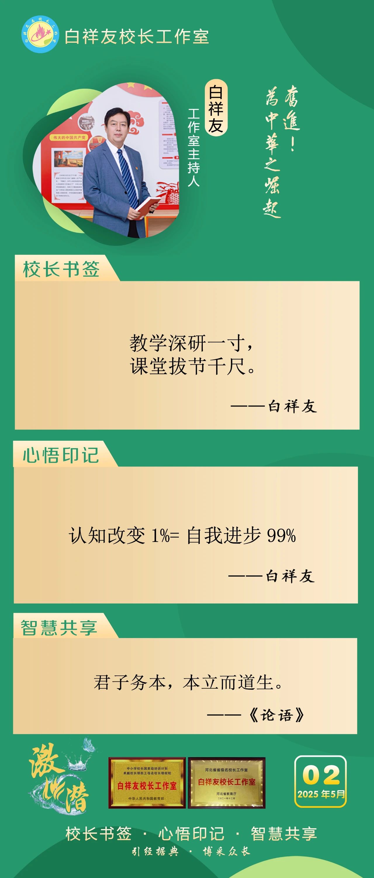 “白祥友校长工作室”成立于2019年4月,是教育部“国培计划”中小学名校长领航工程、河北省首批名校长工作室,目前省内外成员校59所。工作室坚持“资源共享、智慧共融、互助共赢”理念,已成为思想碰撞的交流场,资源共享的品牌站,成果展示的辐射源。