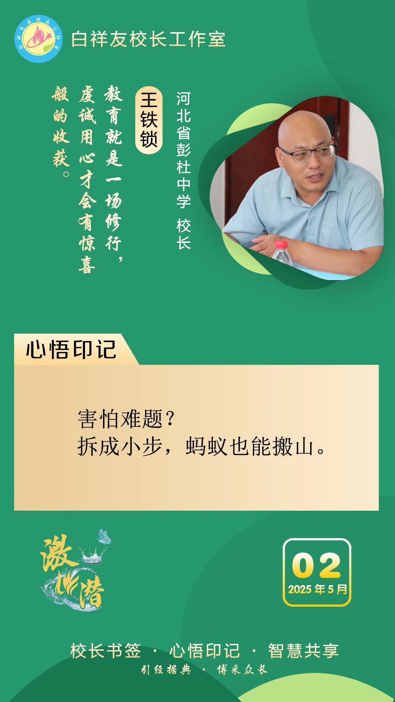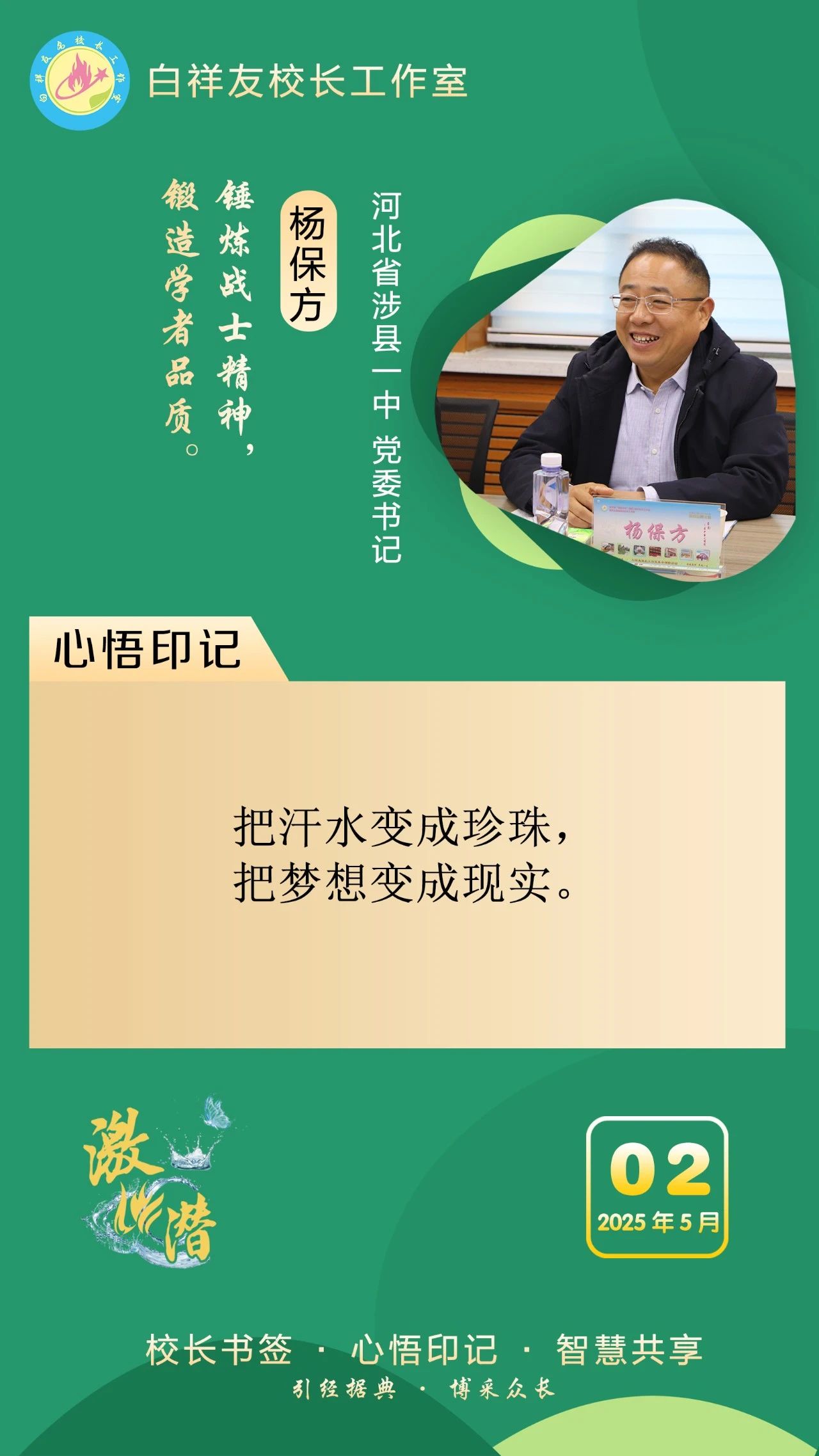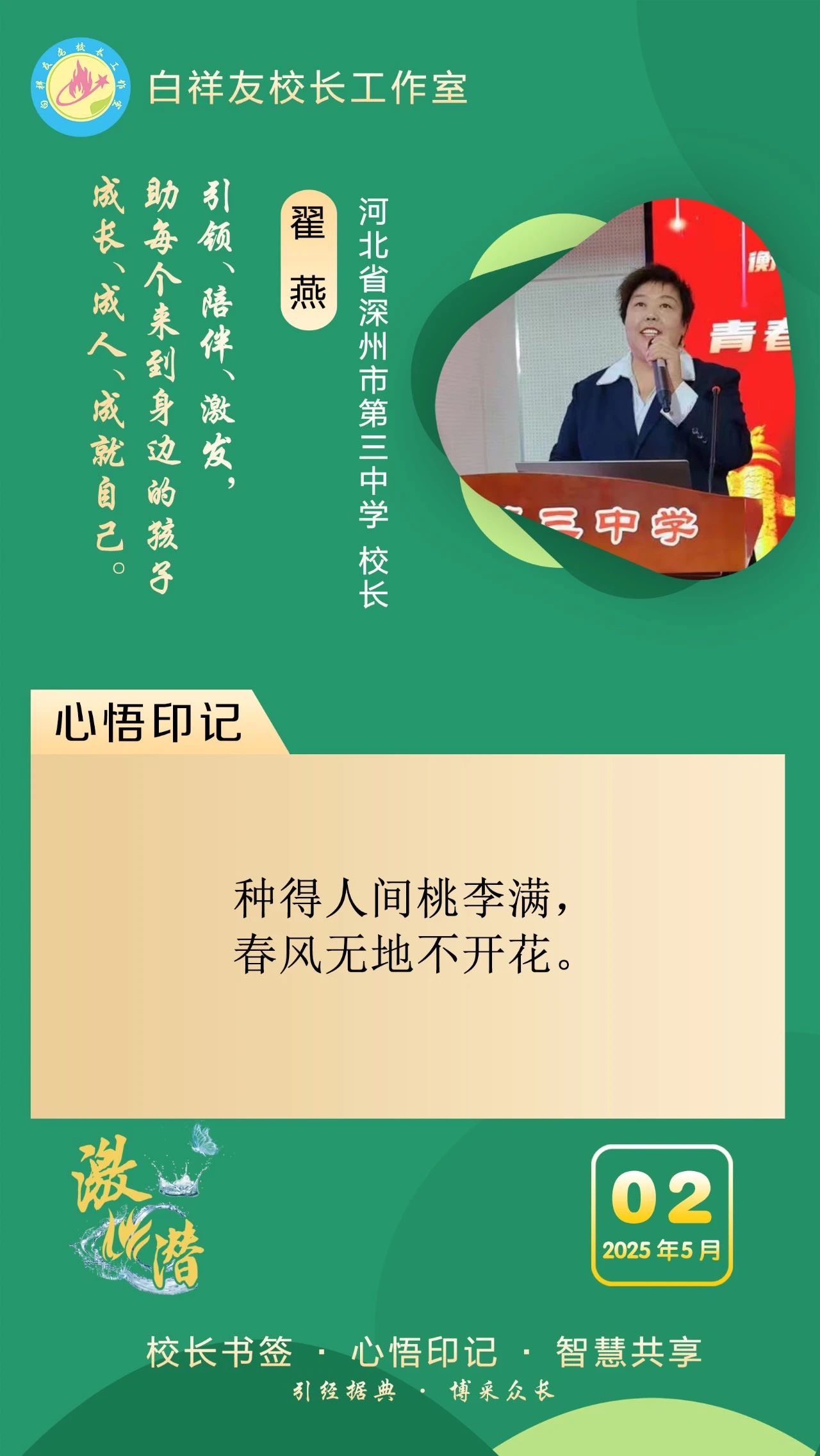 “白祥友校长工作室”成立于2019年4月,是教育部“国培计划”中小学名校长领航工程、河北省首批名校长工作室,目前省内外成员校59所。工作室坚持“资源共享、智慧共融、互助共赢”理念,已成为思想碰撞的交流场,资源共享的品牌站,成果展示的辐射源。