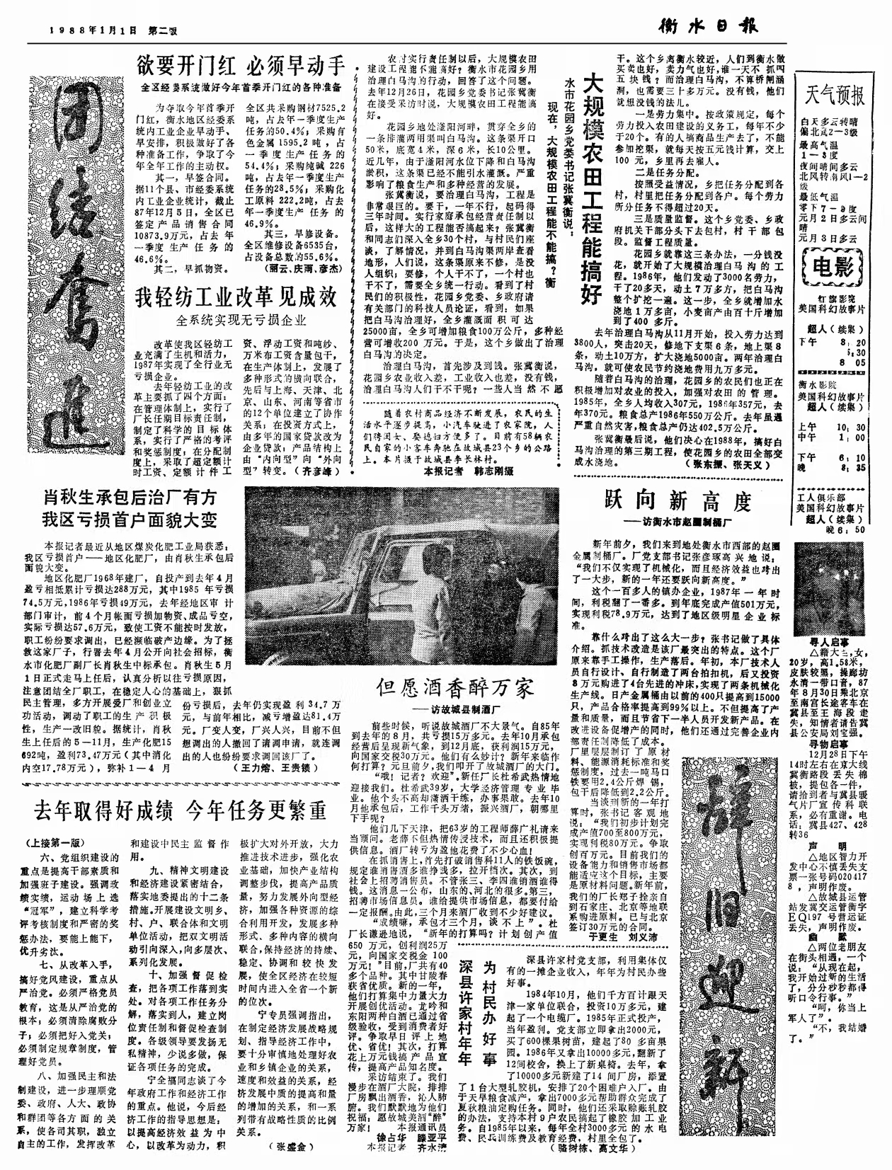 1988年1月1日《衡水日报》